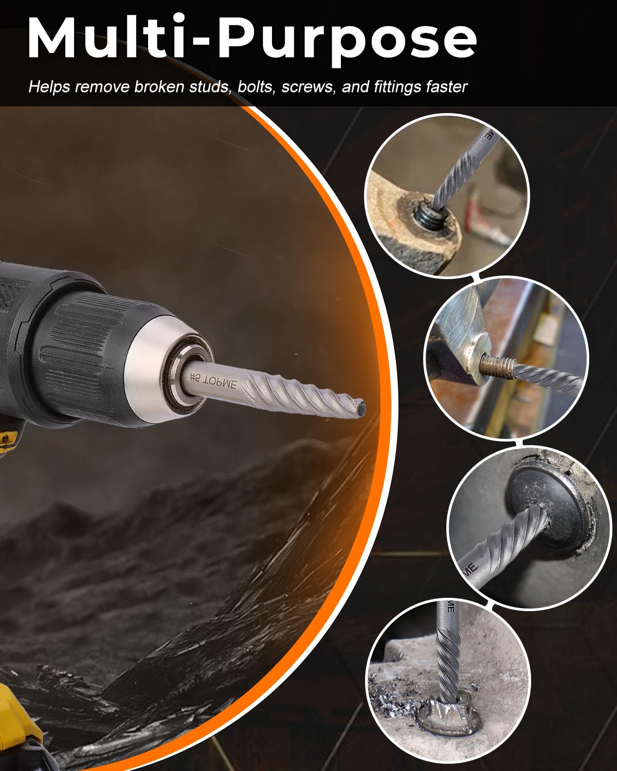 - Multi-Purpose: Bolt extractor set are designed to remove stripped screws, bolt. whether working on wood or metal, are ideal for construction, automotive, home DIY projects, or industrial use. TIP: Recommended for use with a wrench or electric drill.