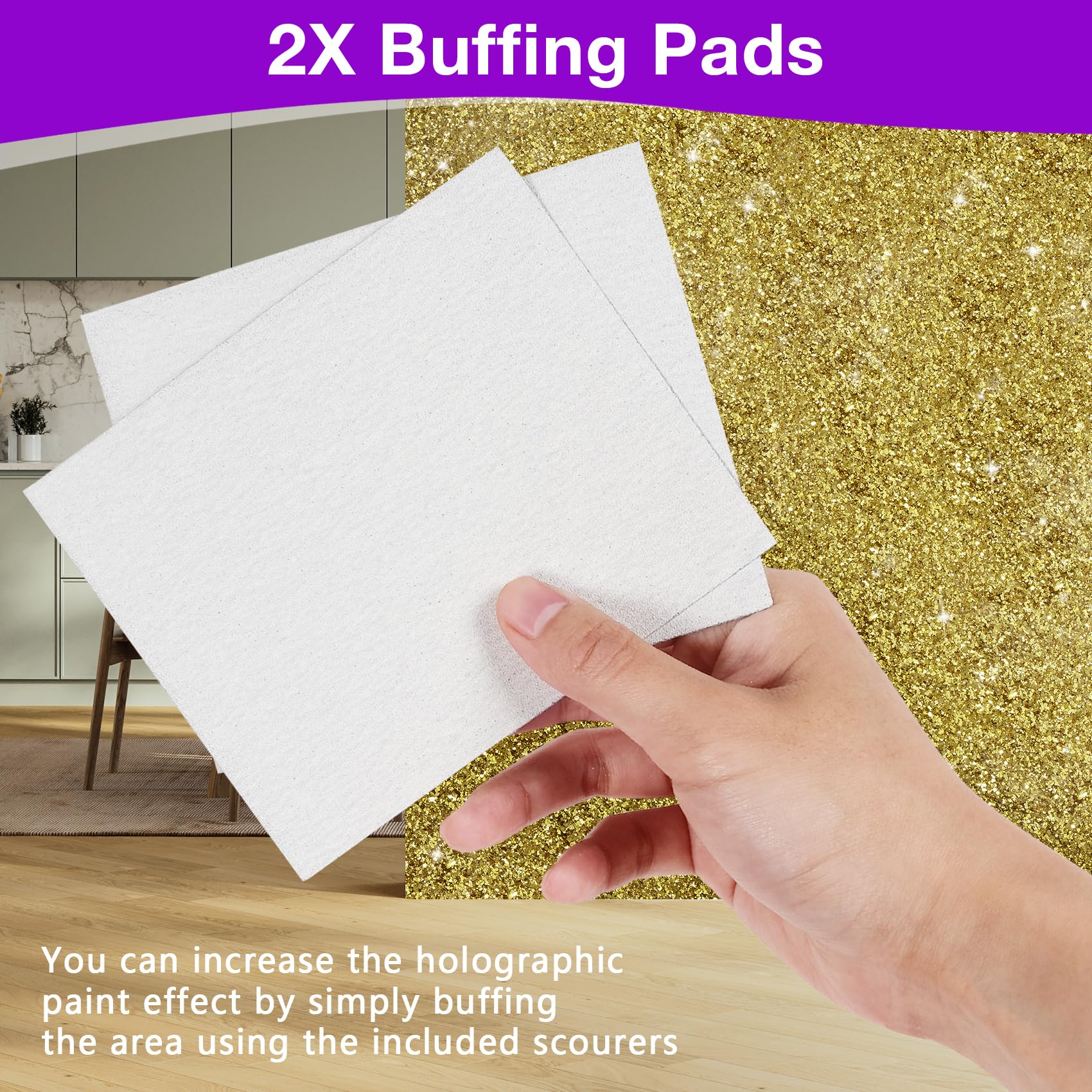 - Included Buffing Pads: Once your stunning glitter wall is painted and fully dried, you can reveal even more glitter sparkles by simply using the specially designed glitter paint buffing pads included