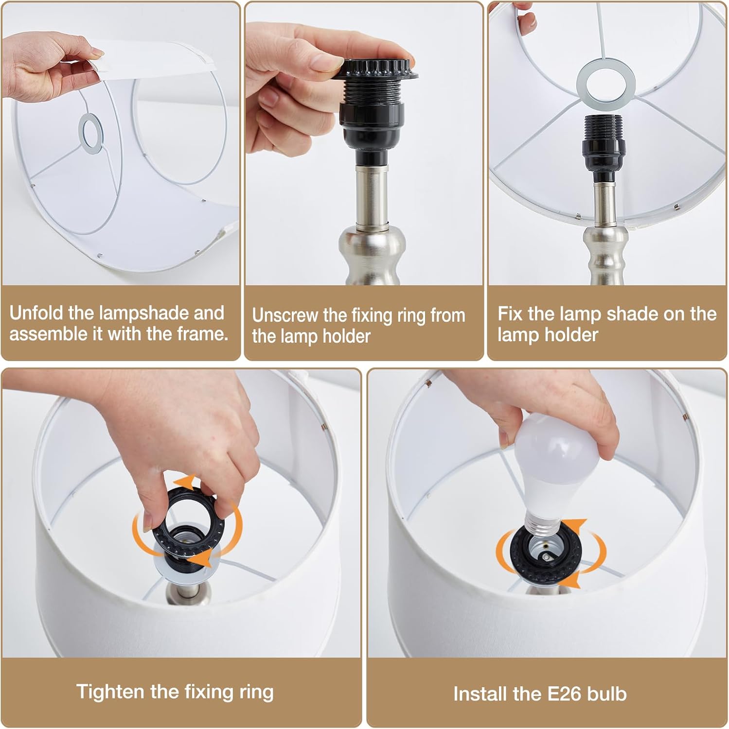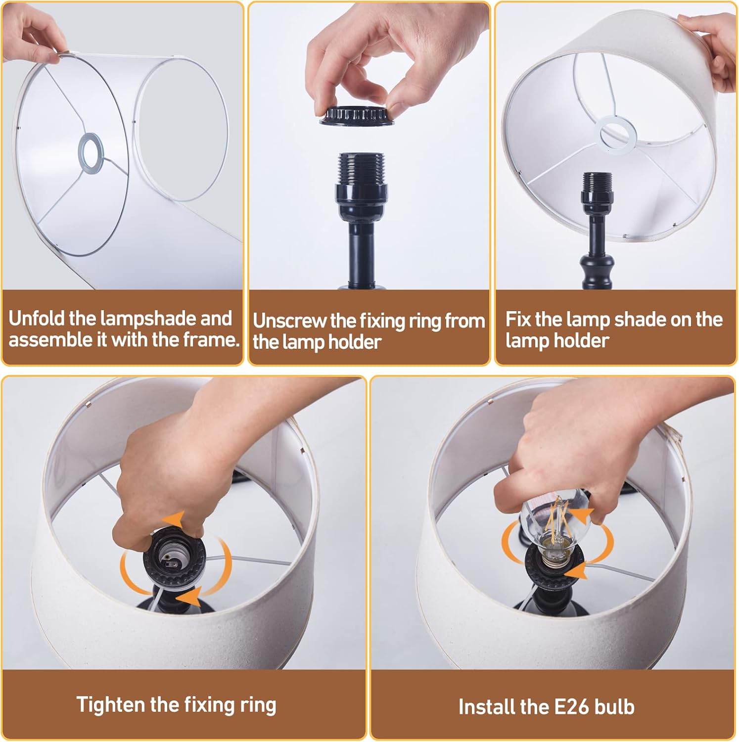 5-step installation guide will make it clear to assemble this lamps for bedroom. It will need to take couple minutes to put together but this bedside table lamps will not disappoint you.