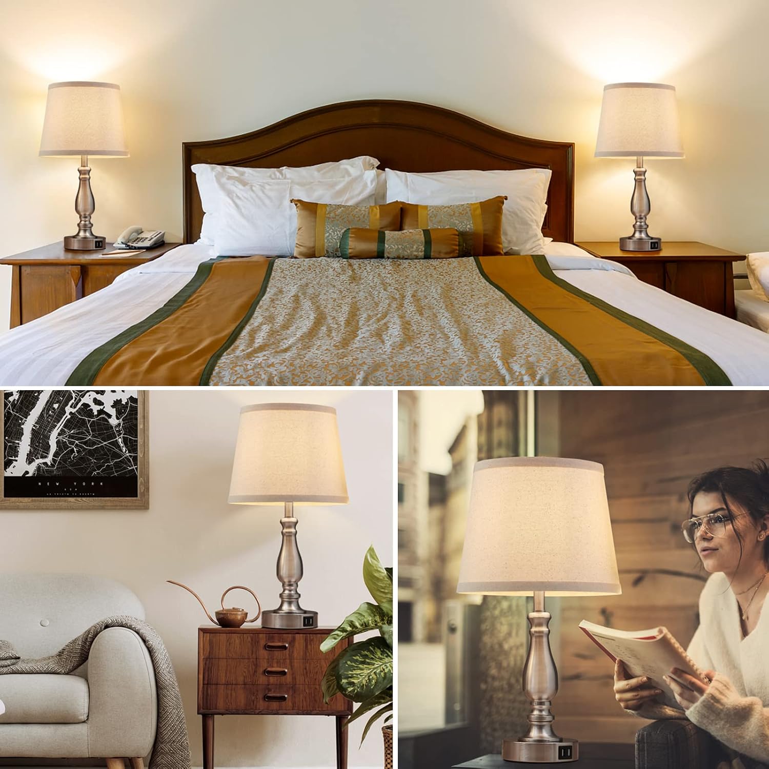 - Touch Control & 3 Way Dimmable: This lamps for bedrooms set of 2 controls the brightness with a high-quality metal body with a sensitive sensor and comes in 3 Way Dimmable: Low, Medium and High. No more struggling around at night to find the switch for your bedside lamps set of 2, just touch the table lamps body, you can choose different modes to create different atmospheres to meet your daily needs.