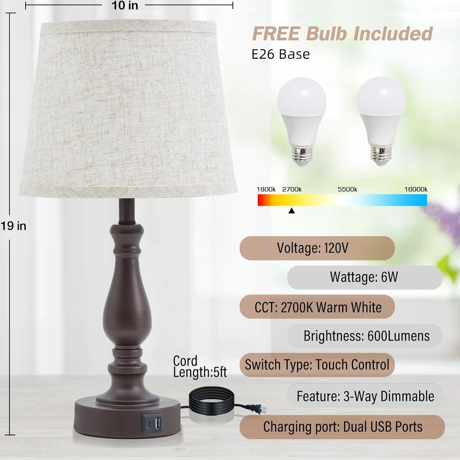 - 2 Energy-saving LED Bulbs Included: No need to buy table lamp for bedroom bulbs separately, we have specially prepared LED bulbs. Our bedside table lamp has no flicker, no glare, no sound when using it. Low light helps you fall asleep easily. Medium light provides the friendliest light for your eyes as you read. High light allows you to focus on your work. 60W 2700K warm white light equivalent bulbs can help you save at least 90% energy bills in the daily.