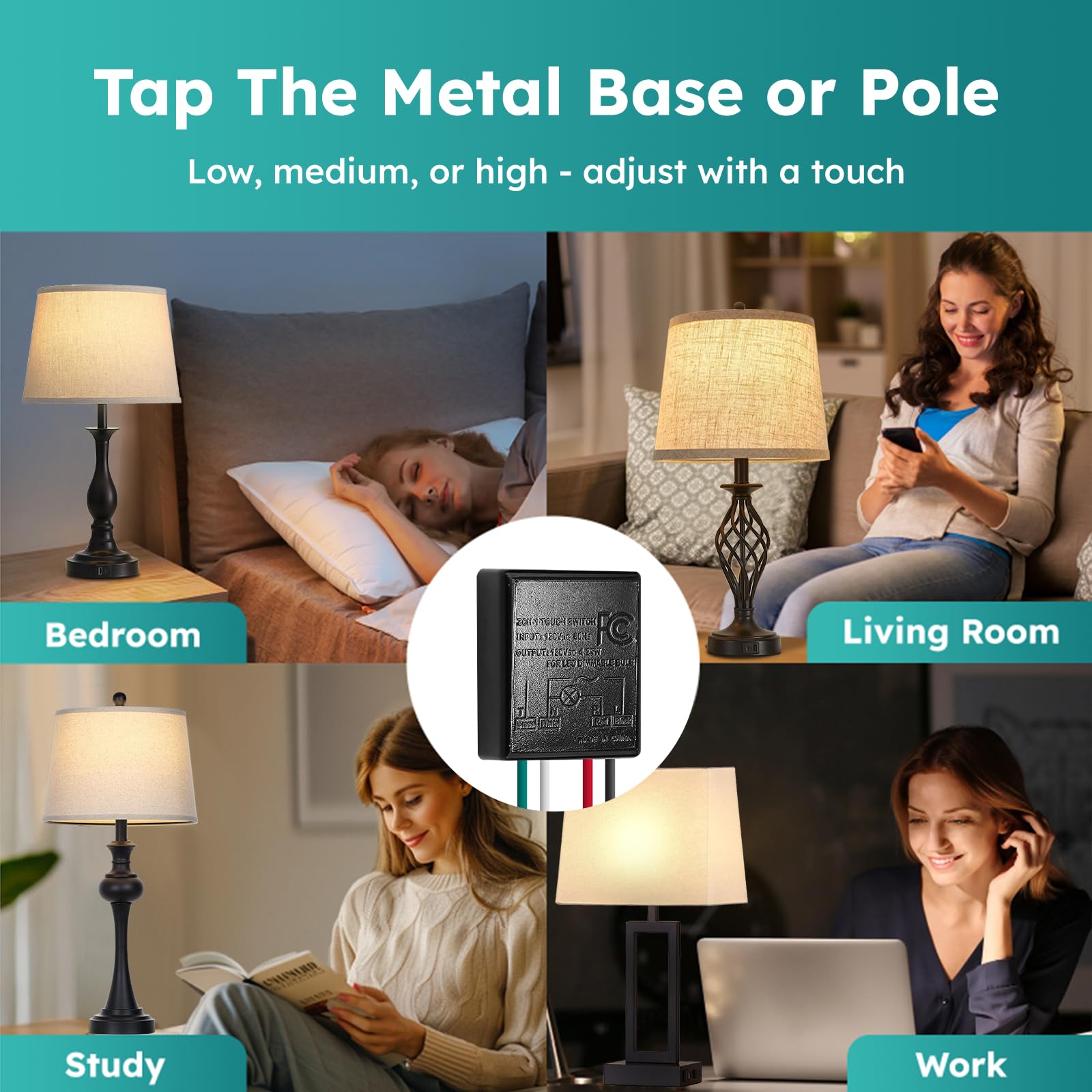 - Wide Application: Perfect lamp touch control module for any lamp. The 3 way touch lamp switch replacement is designed for table lamps, desk lamps, bedside lamps. Touch lamp control module 3 way with three brightness options and a touch-sensitive control, users can easily adjust the lighting brightness. Compact and lightweight, this touch lamp control switch fits various bulb types (LED, Incandescent), providing flexibility for different lighting needs in bedrooms and living rooms.
