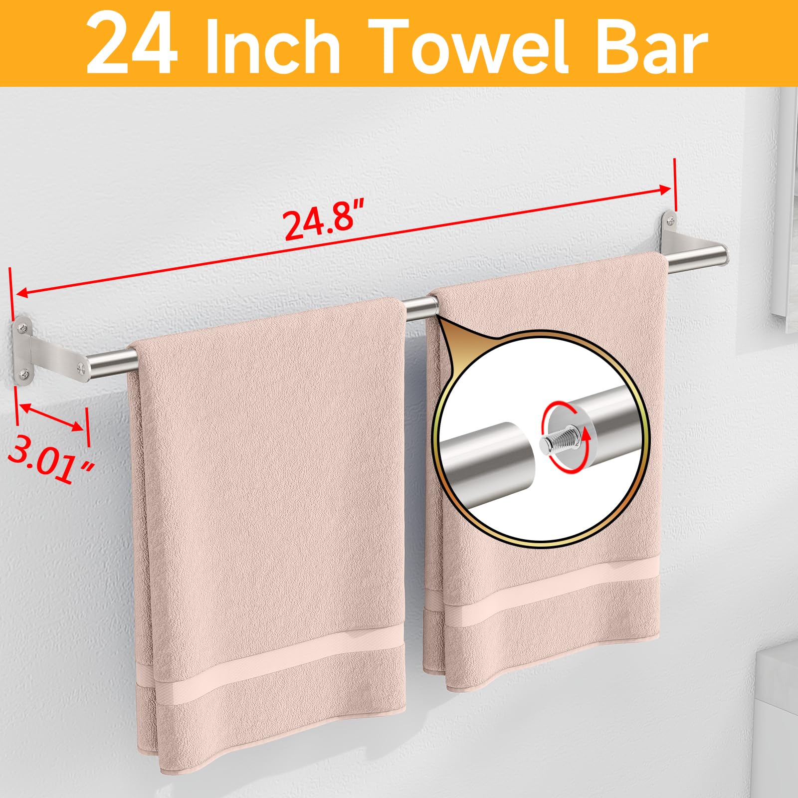 - 24 inch towel bar overall size: 24.8"(L) x 2.36" (D) , suitable to completely spread out the towel to dry. No need to fold towel