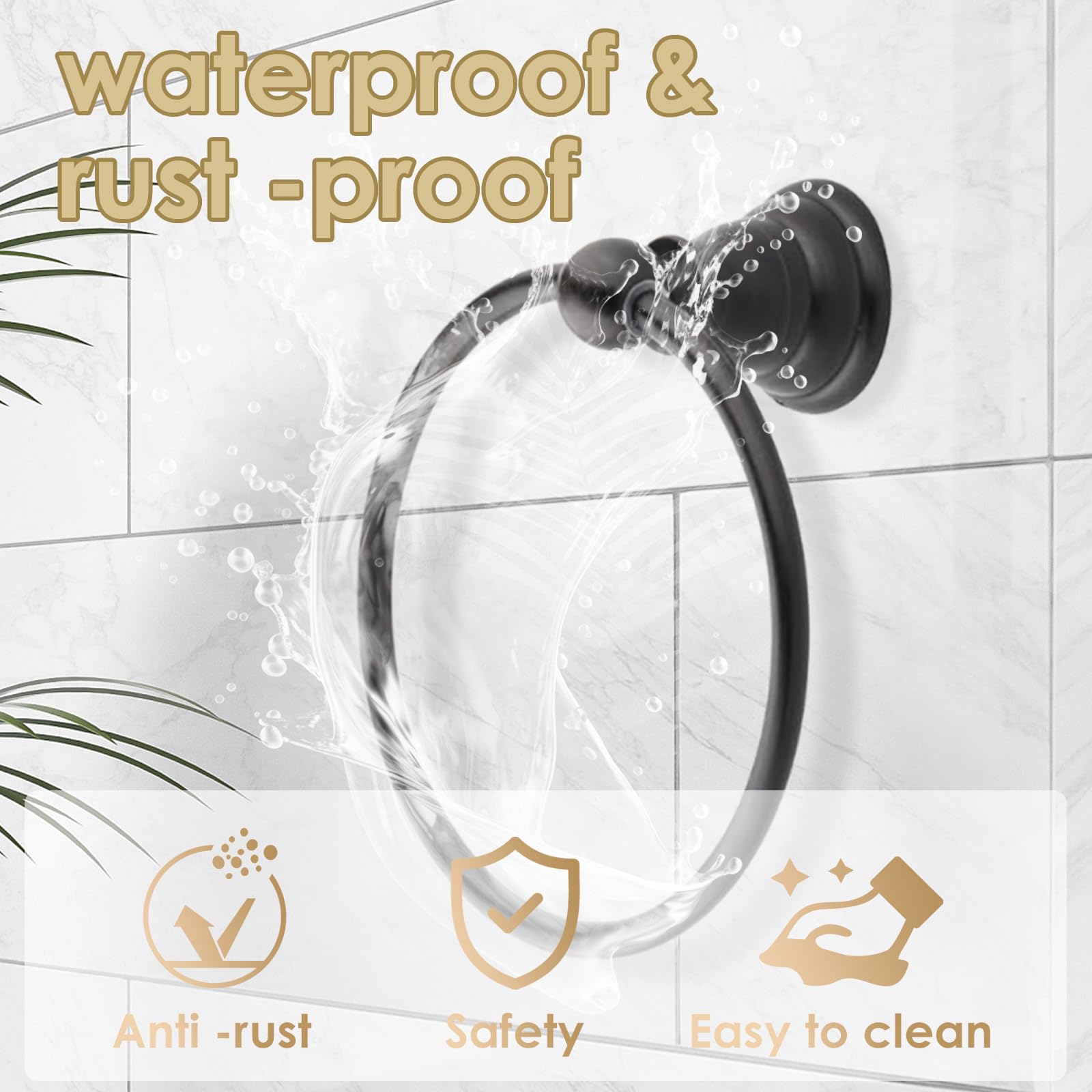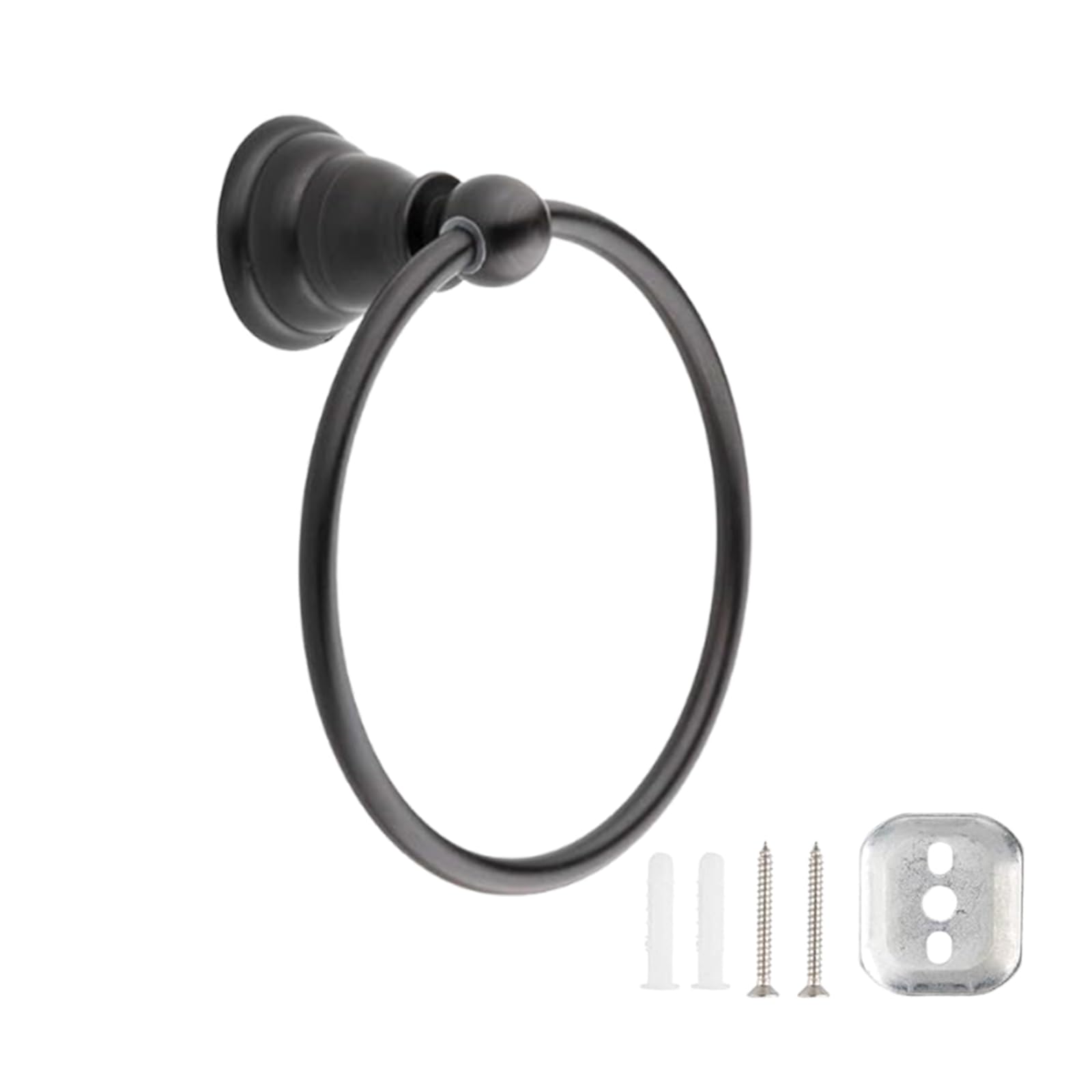 - Sleek & Modern Aesthetic Featuring a sleek Oil Rubbed Bronze finish, this round towel ring complements black bathroom accessories and adds a touch of modern luxury to any space. Its timeless design fits perfectly with a variety of décor styles, from rustic bathroom accessories to matte black bathroom accessories, making it the perfect finishing touch for your bathroom, kitchen, or guest room.