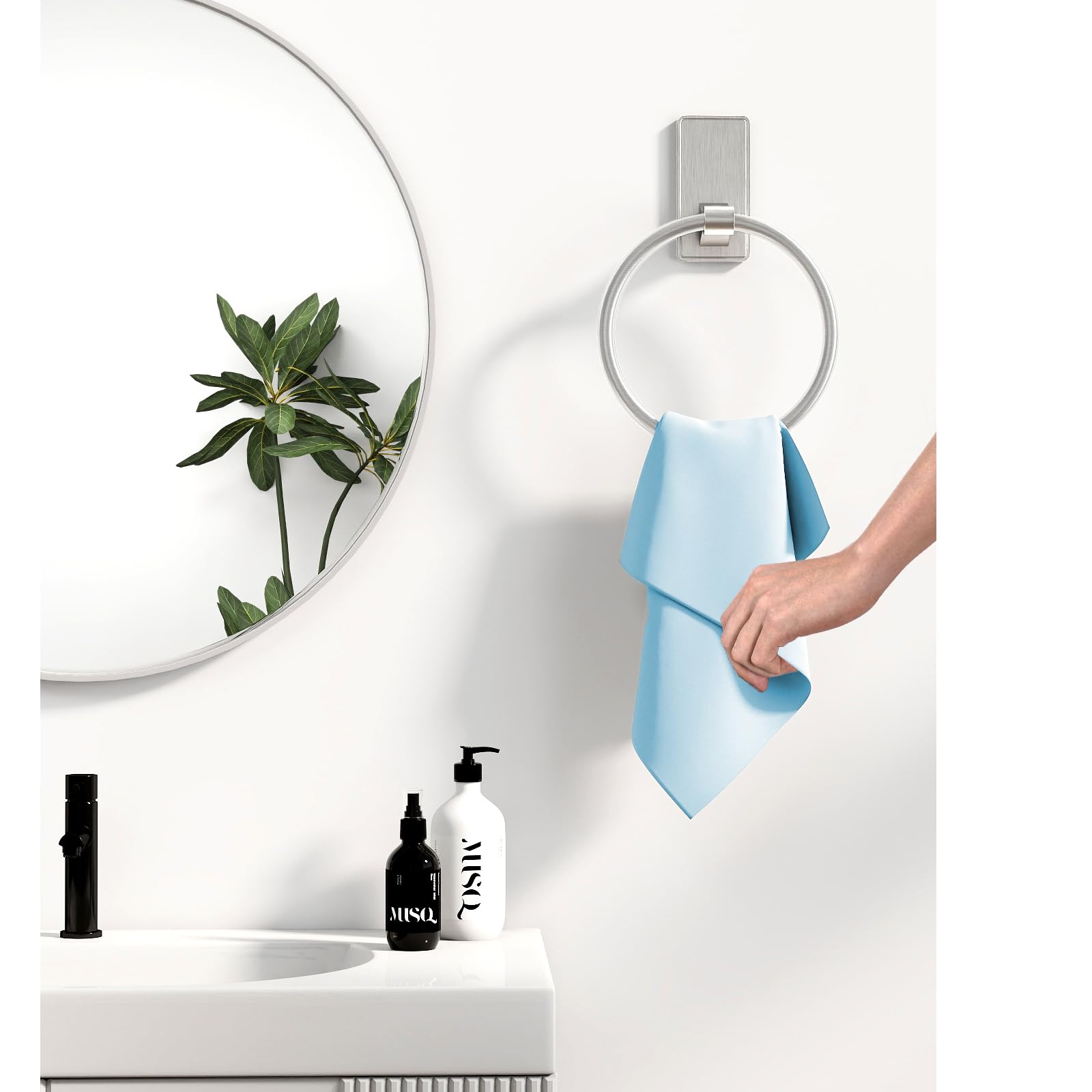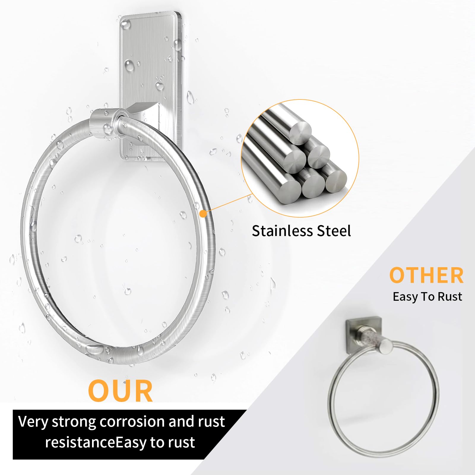 Towel Ring, SUS304 Hand Towel Holder for Bathroom,Adhesive Towel Holder Bathroom Towel Hanger for Bathroom, Kitchen, Brushed Nickel