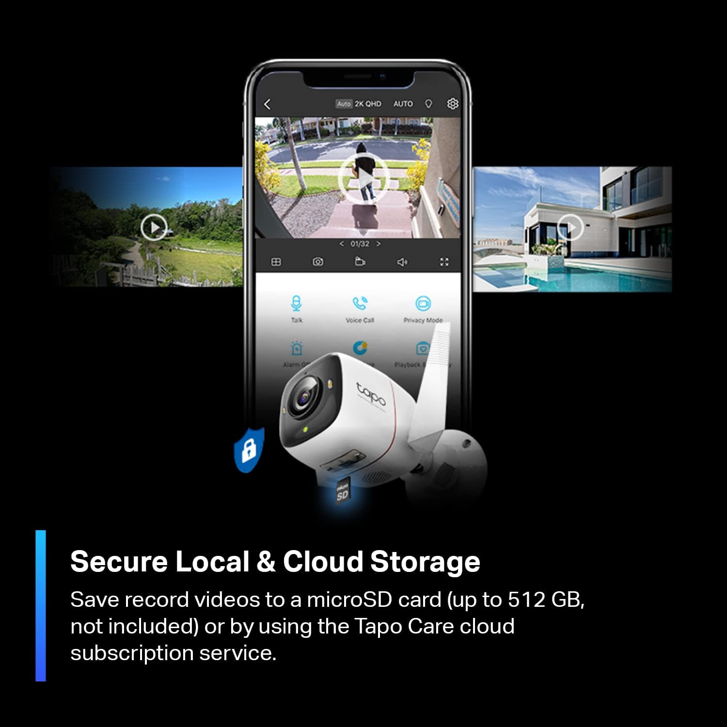 - 【Secure Local or Cloud Storage】Save footage continuously on up to a 512 GB microSD card (not included) or subscribe to Tapo Care for cloud storage which saves 30-day video history and provides additional benefits such as motion tracking, baby crying detection, and more. [Before purchasing a microSD card, please check the TP-Link website FAQ to ensure compatibility with your device.]