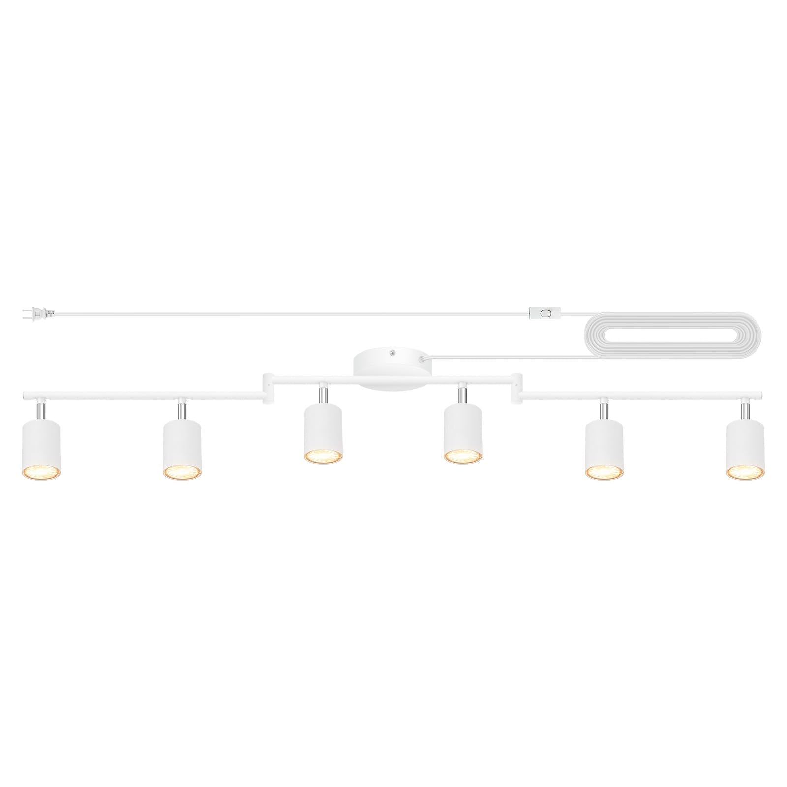 Track Lighting Plug in, LED Track Lighting Fixtures Ceiling Kit, White 6-Light Ceiling Light Plug-in, Wall Light with 14.8ft Power Cord, Rotatable Kitchen Spotlight for Bedroom(GU10 Socket, NO Bulb)