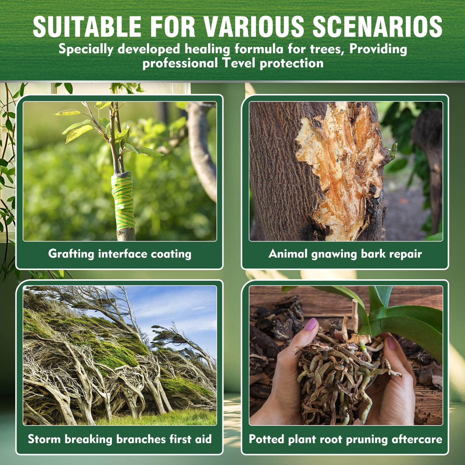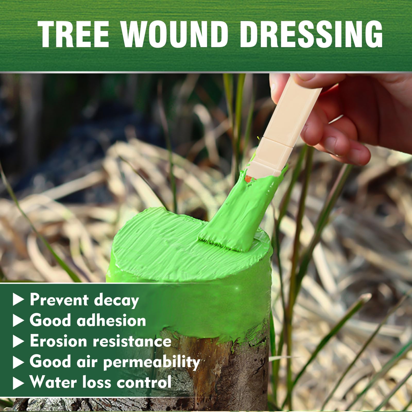 - Promote Healing & Seal Out: Our natural tree wound dressing forms a protective barrier over cuts and grafts, shielding against moisture loss, tree wound sealer is beneficial to the antisepsis of plant pruning and cutting, while creating an optimal environment for faster healing.