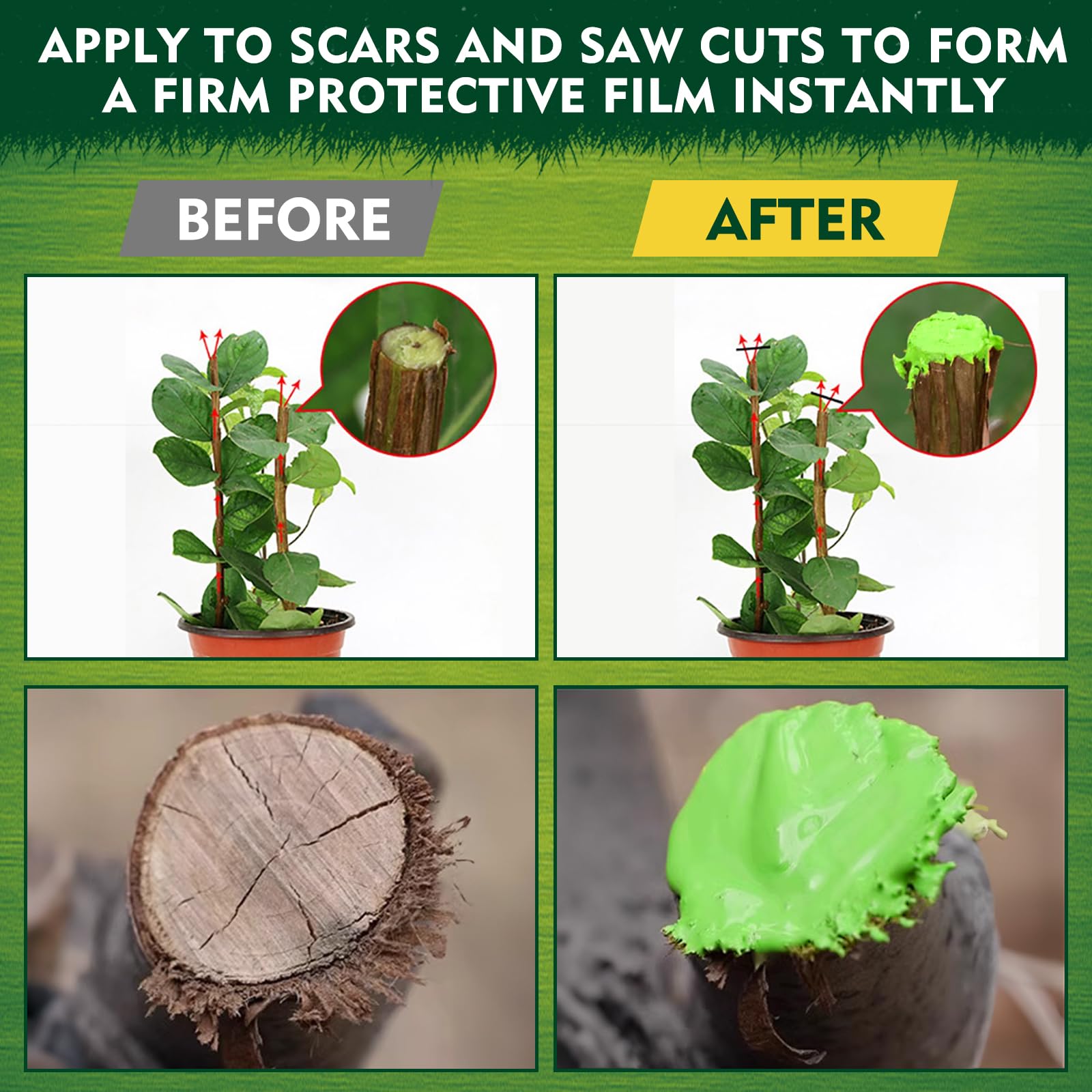 - Easy to Apply, Fast-Drying Formula: With a smooth, brushable paste texture, this tree pruning sealer goes on easily—use the included applicator. Tree wound pruning sealer dries quickly, forming a flexible seal to ensure quick protection of your potted plants, reducing the loss of moisture and nutrients at the pruning site.