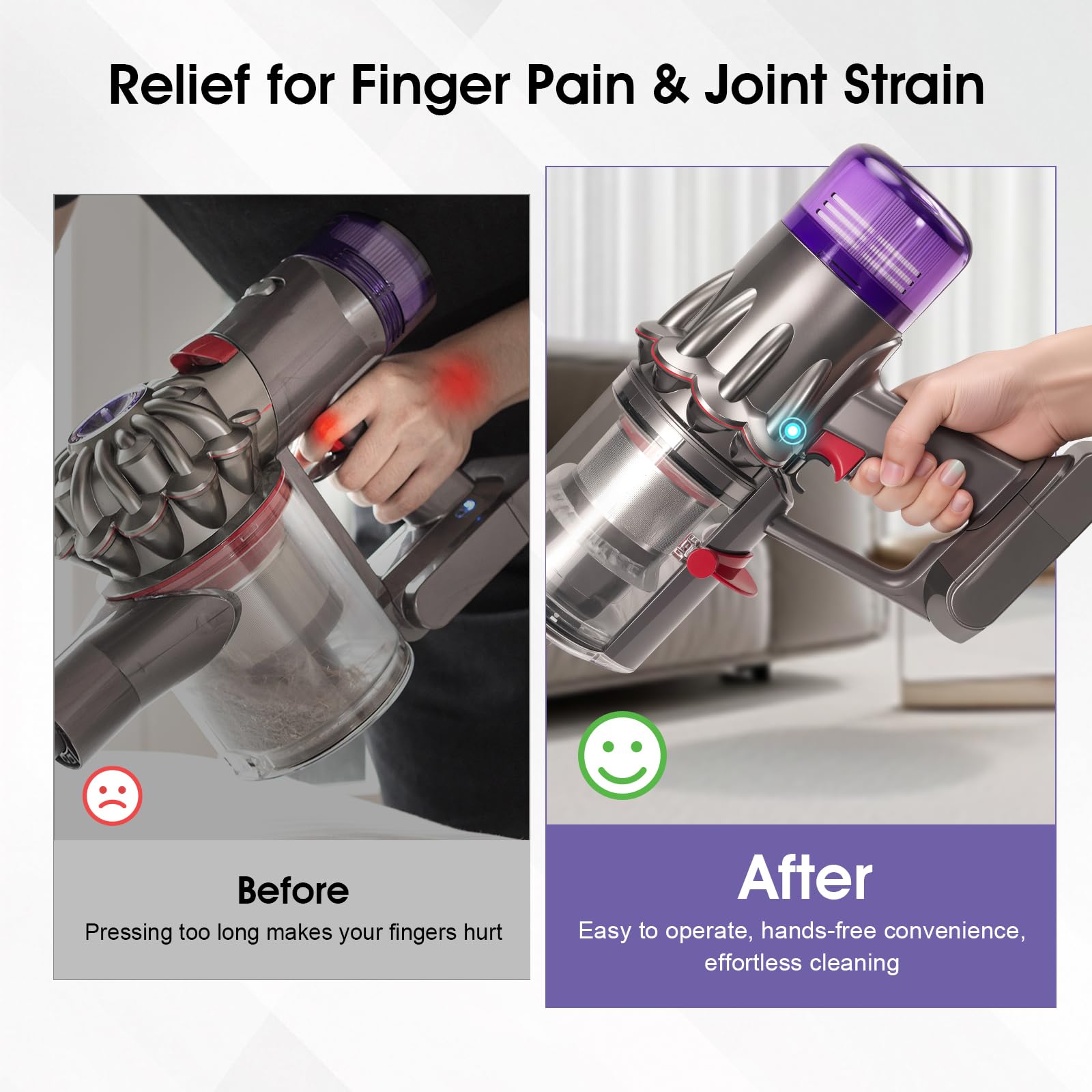 - Relieves Finger Strain & Joint Pain – REEYEAR upgraded new patent design power button switch lock fits for Dyson most vacuum models in both friendly for left/right hand users , No more keeping your finger pressed on the Dyson power button; great for finger fatigue, arthritis, or stiffness during long cleaning sessions.improved your housework cleaning efficiency