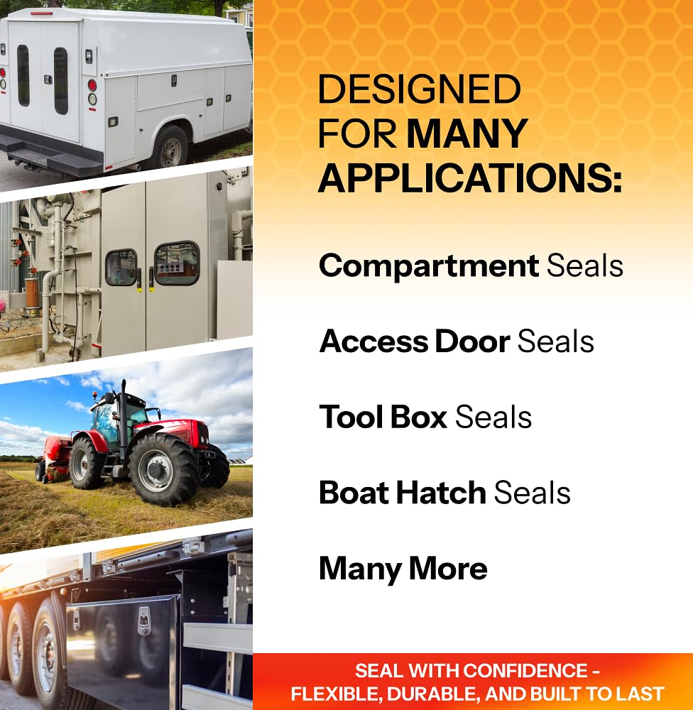 - MANY APPLICATIONS: You can use this co-extruded rubber trim seal for a variety of applications including RV slide out seals, boat hatch seals, automotive door seals, storage container seals, tool box seals, decorative trim seals, and so many more.