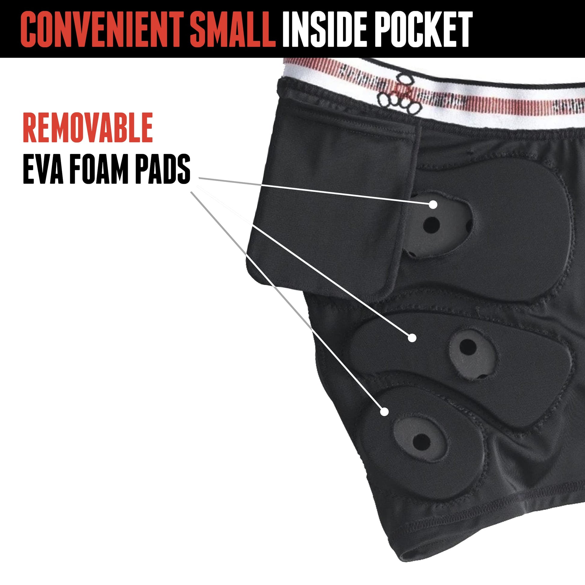 - Equipped with 10mm thick EVA foam pad for increased protection for hips, thighs and tailbone; pads are removable to customize padding zones