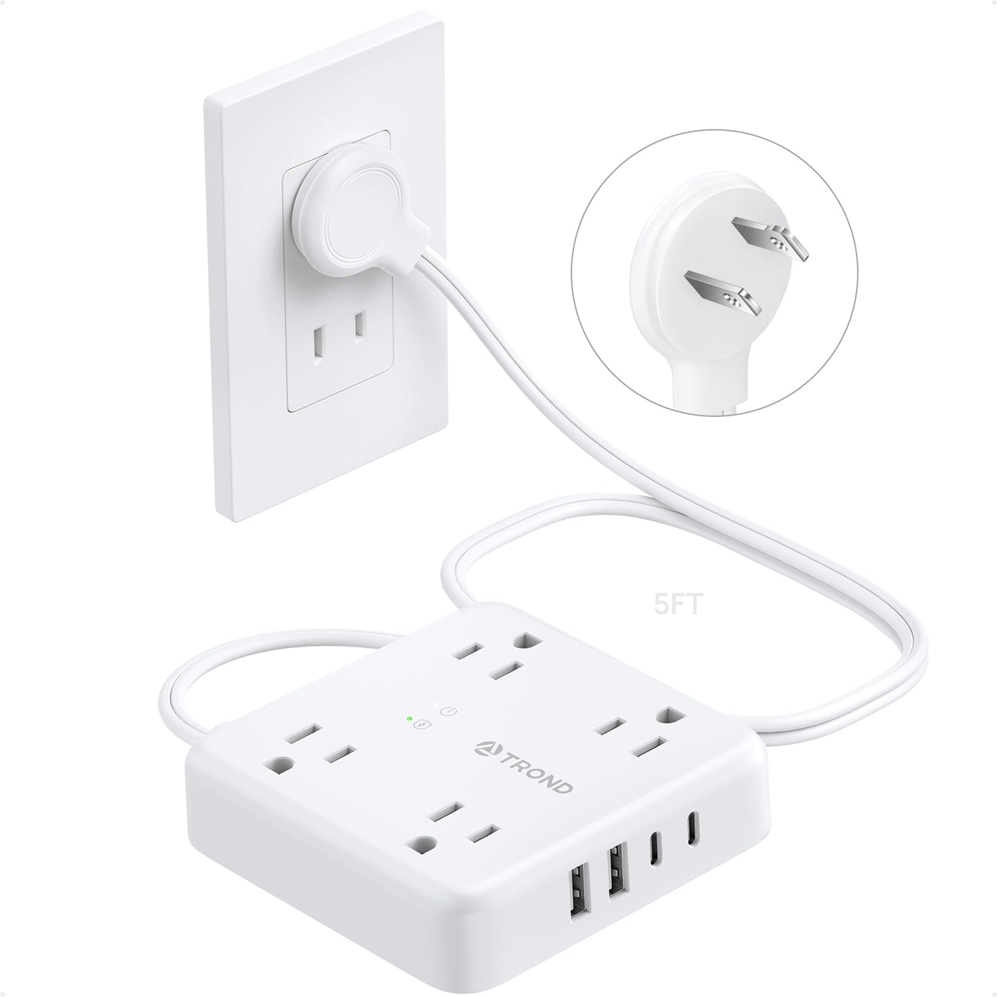 - 8-in-1 Charging Station: This compact 2 prong power strip with 4 AC outlets (max 1250W/10A), 2 USB-C ports, and 2 USB-A ports can safely power up to 8 devices without unplugging each other. Compatible with smartphones, tablets, laptops, cameras, e-readers, and more. The design of this outlet is widely spaced, allowing you to use all four outlets. Perfect for large plugs