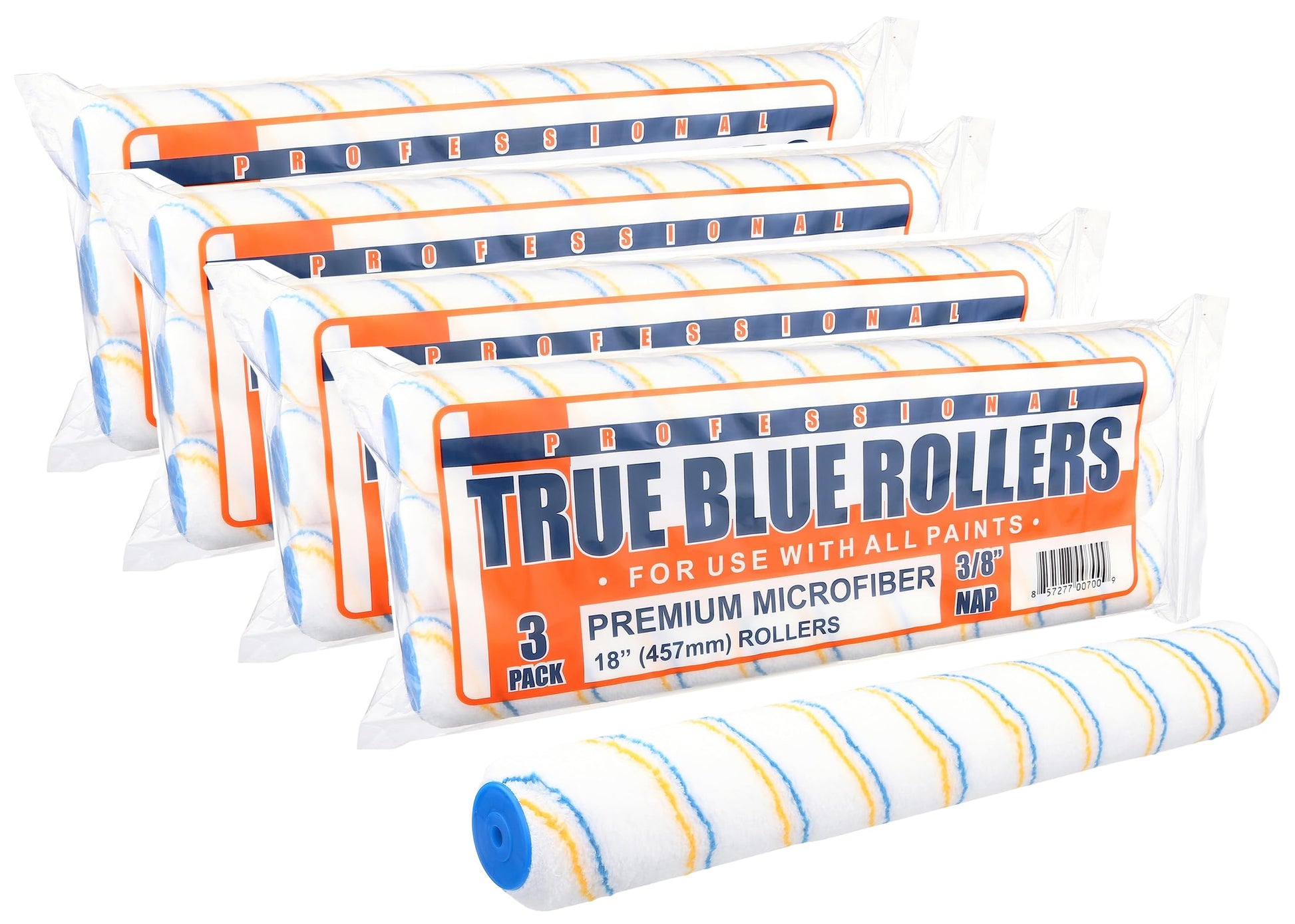 True Blue 18" Professional Paint Roller Covers, 18 Inch, Best for All Types of Painting Surfaces, Refill Bulk Pack (12, 3/8" Nap)