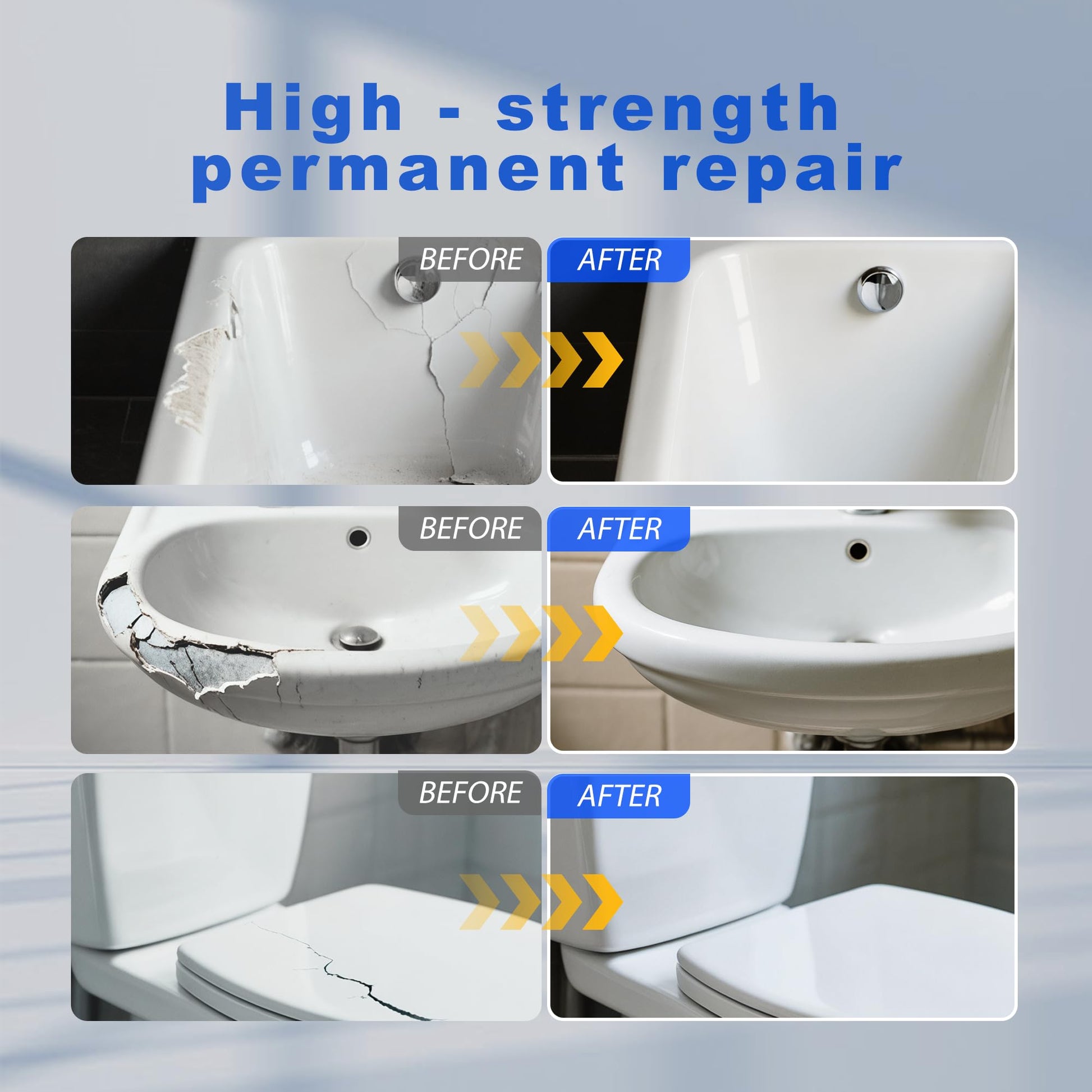 - Due to its water resistance, heat resistance, high temperature resistance, non-shrinkage, non-yellowing, and non-mold properties, it is widely used in the repair of bathtubs, toilets, washbasins, enamel vases, marine fiberglass, and other materials. It is simple and convenient to use, requiring no prior experience, and is suitable for both home and personal repair use.