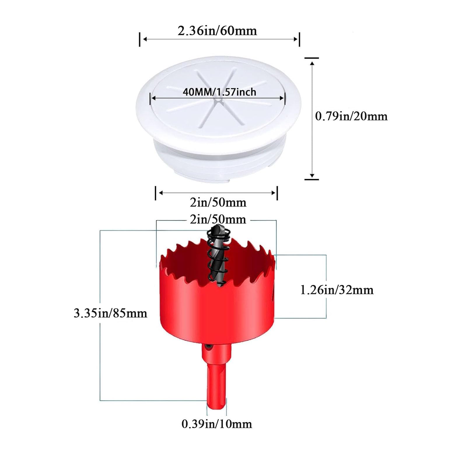 - 【Dimension】Each desk cable grommet outer hole diameter is approx. 50mm/2inch; height 22mm/0.86 inch. manual measurement, please allowed 0.01-0.1 inch error