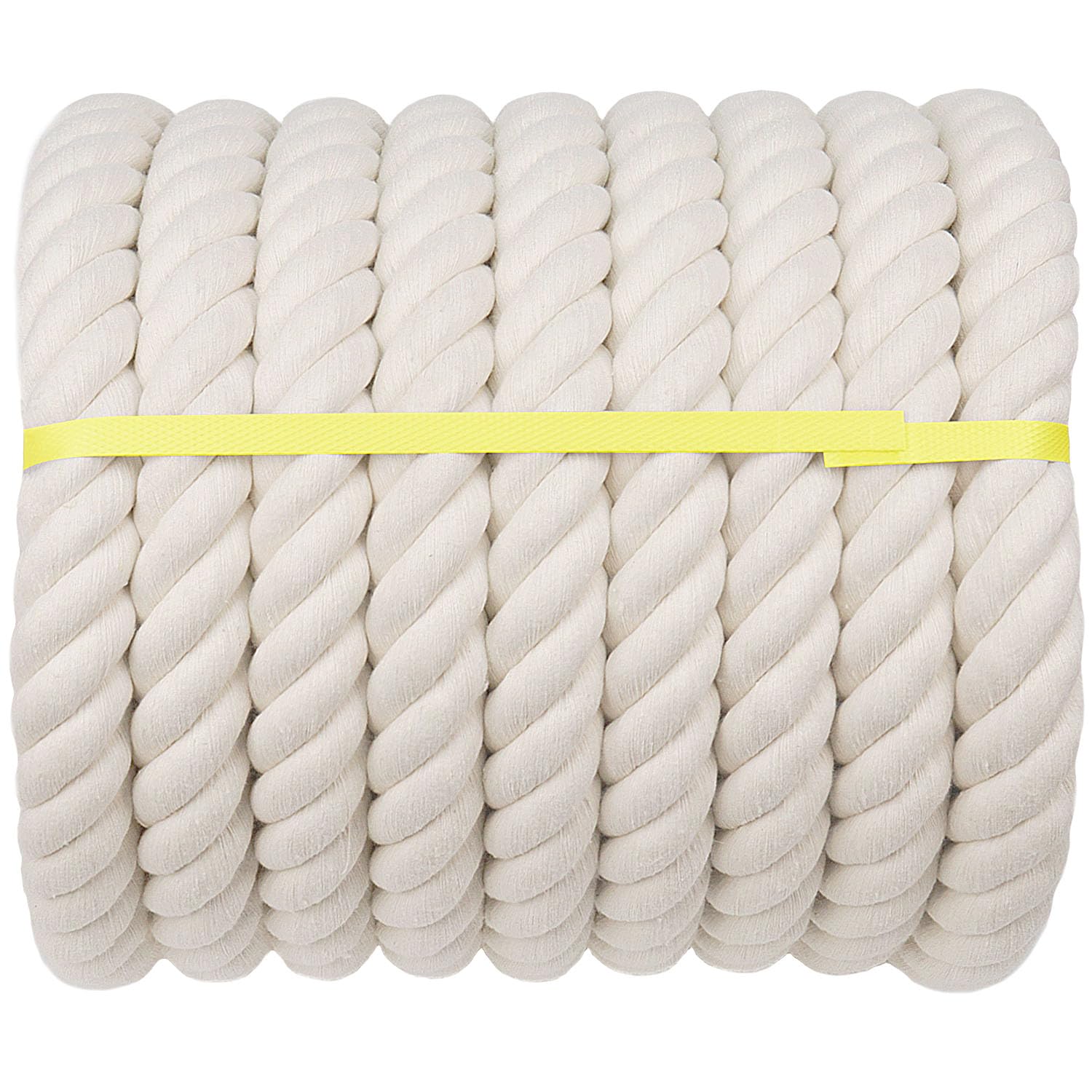 Twisted Cotton Rope (1.5 inch x 50 feet) Natural White Rope for Nautical, Tug of War, Climbing, Hammock, Decorating