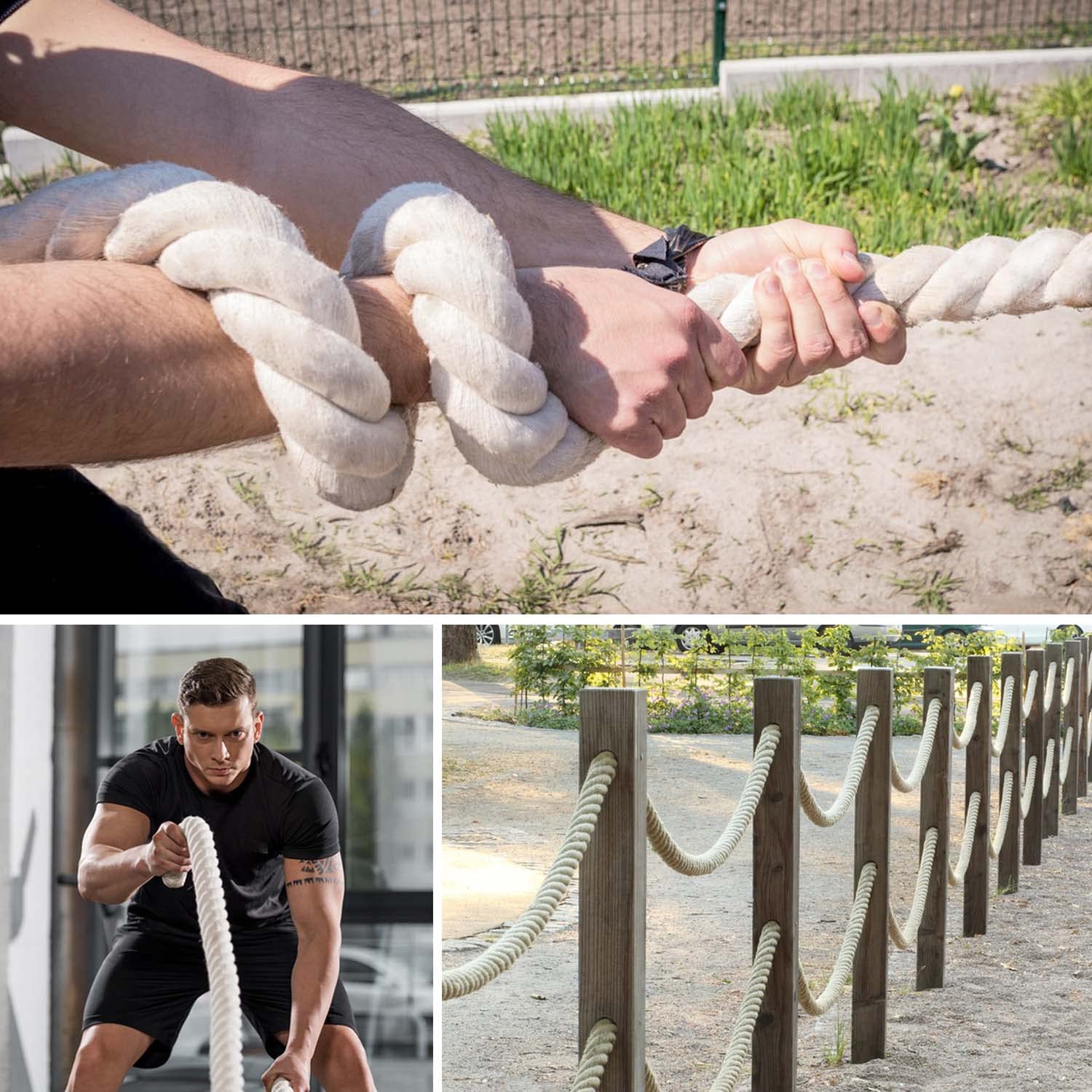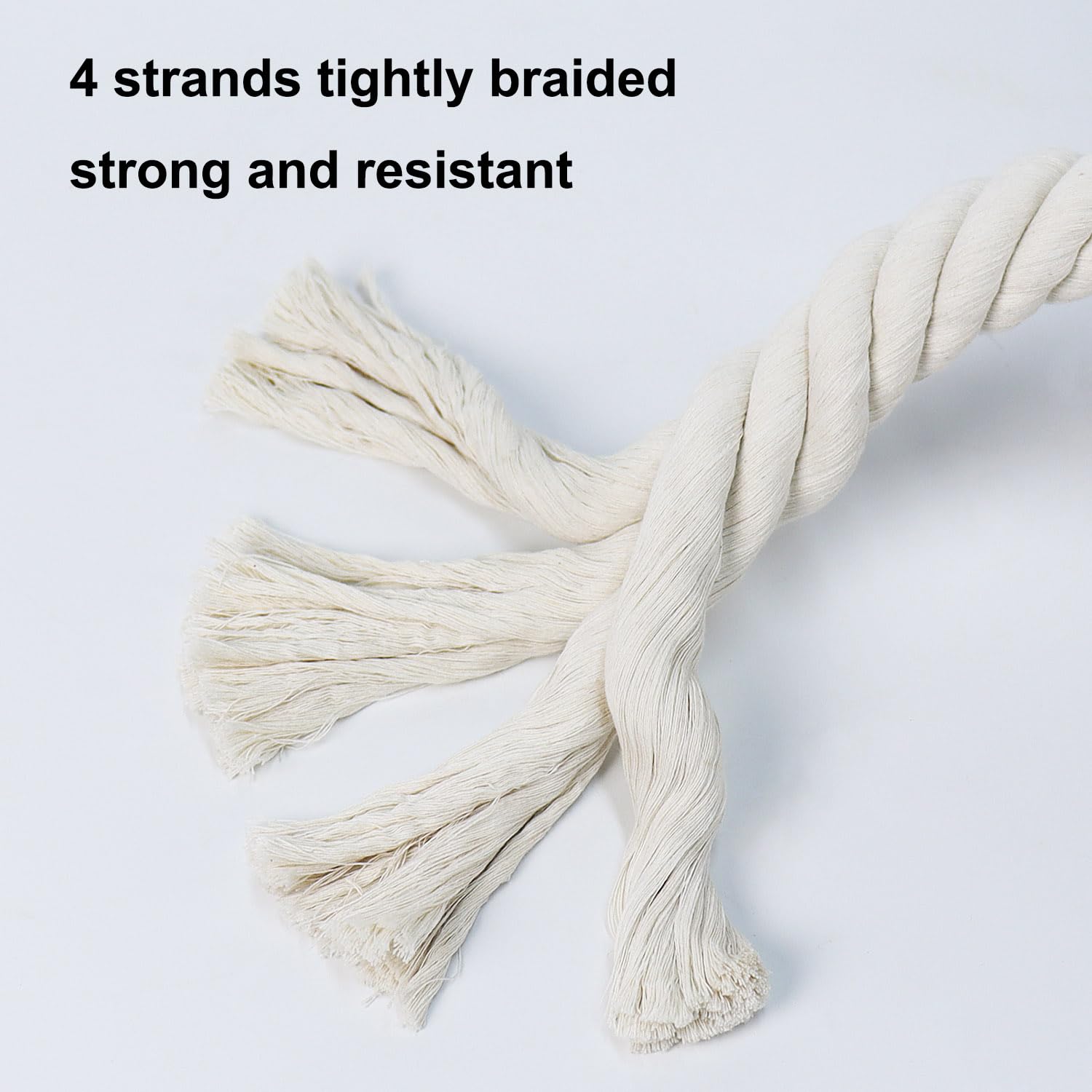 - 4 strands tightly woven, more material than ordinary 3-strand cotton rope on the market, so it is stronger and more resistant.
