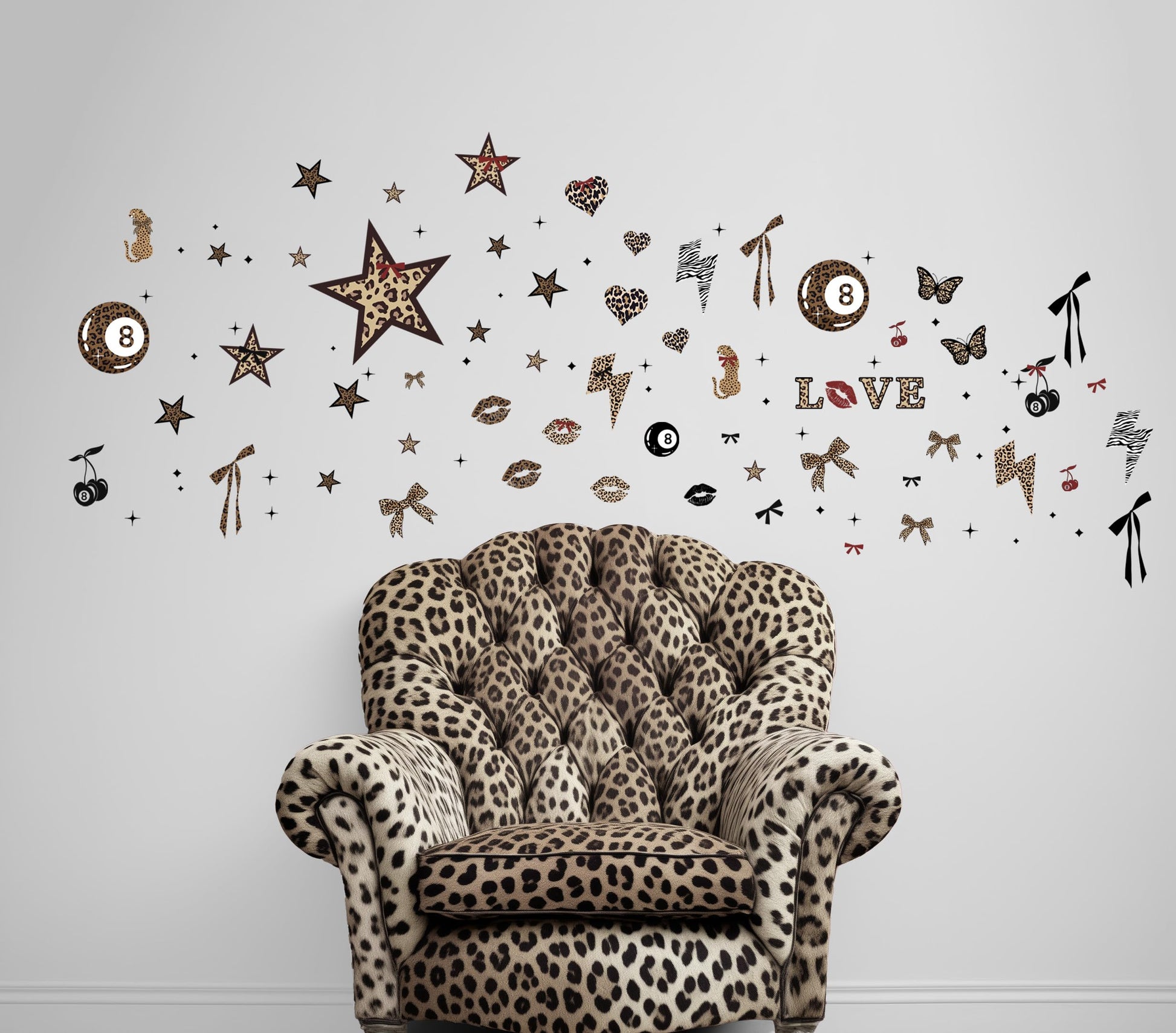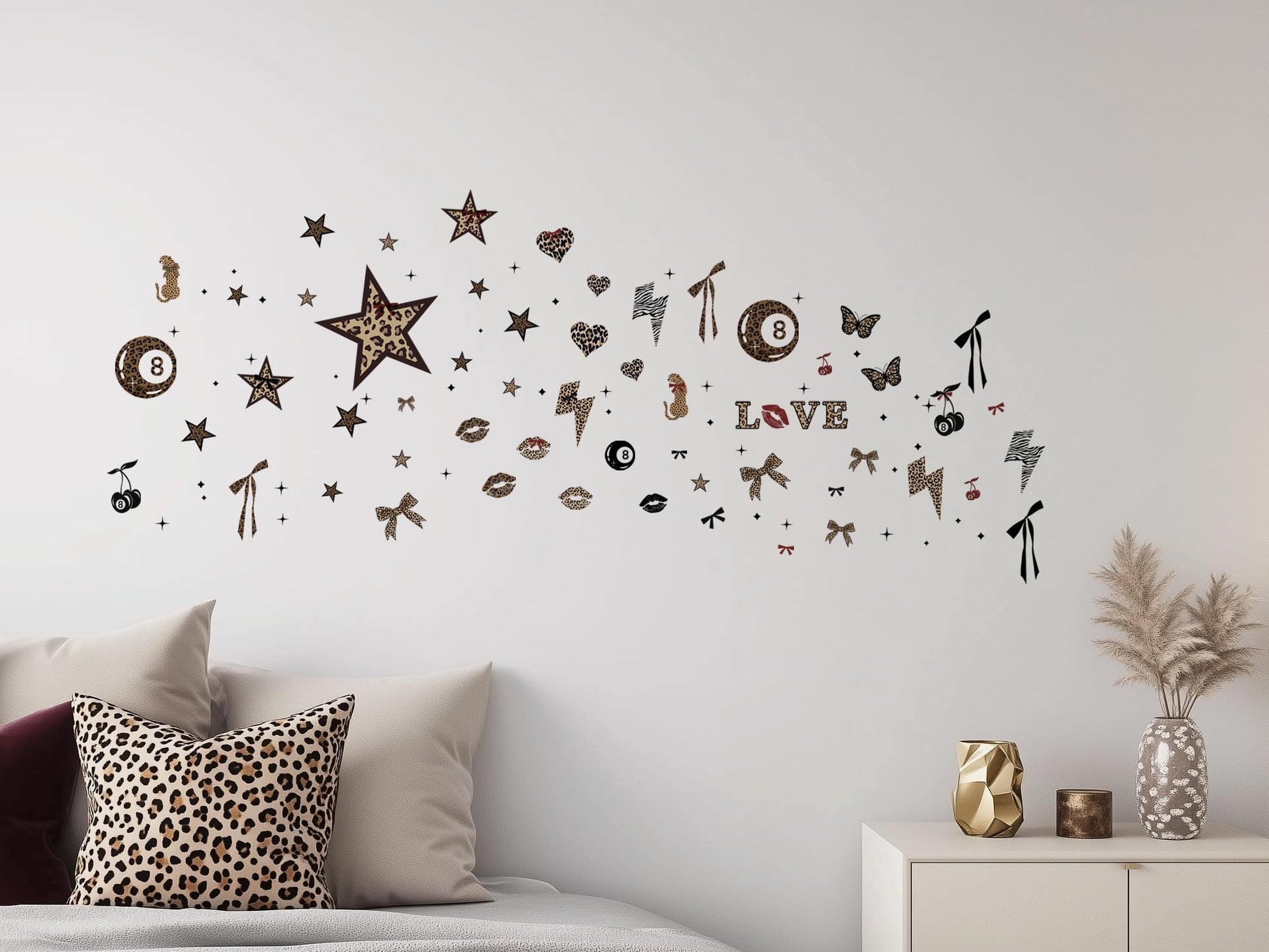 - Cheetah Print Wall Stickers: Transform your room with vibrant leopard print stickers featuring lips, stars, and bows, ideal for creating a chic, daring aesthetic in any room.
