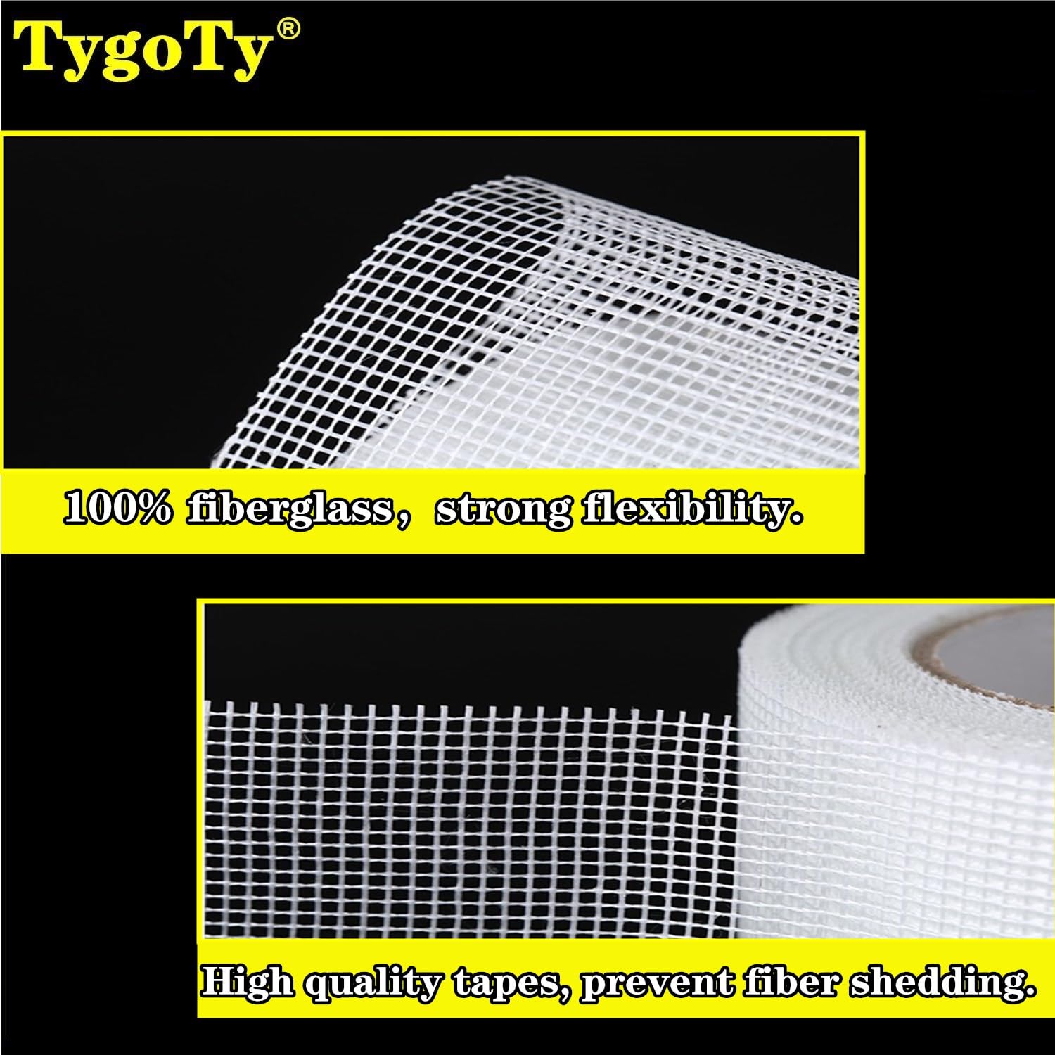 TygoTy Drywall Joint Mesh Tape 2“×180 Ft,Strong Self-Adhesive 100% Fiberglass Drywall Repair Tape for Wall Crack and Seam Patch,White