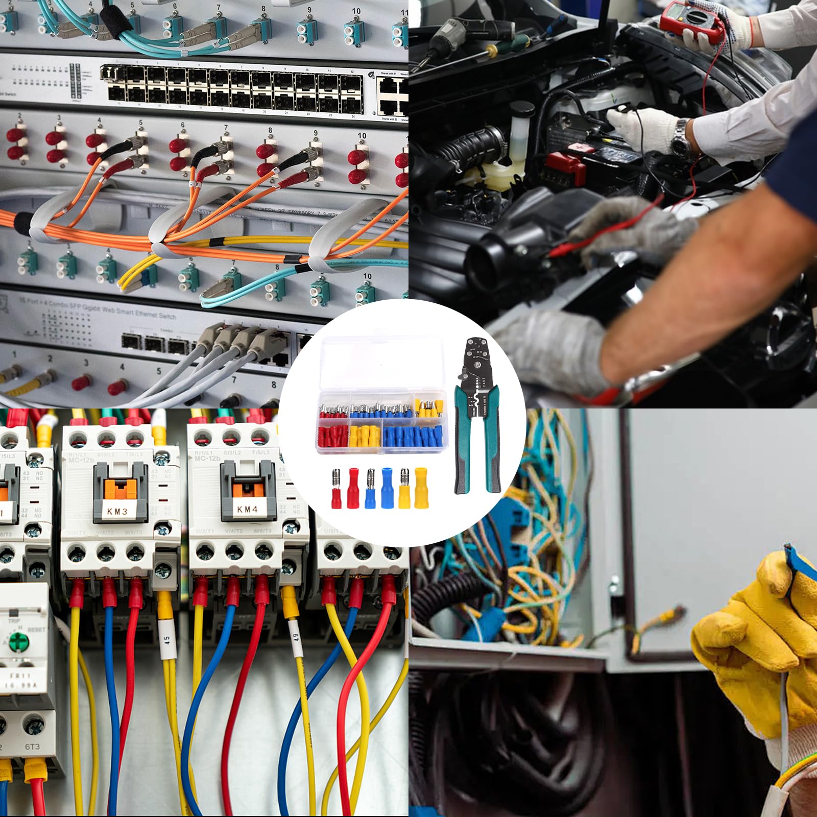 - 🔁 3-in-1 Crimper :Professional-grade tool combines crimping/cutting/ stripping (10-24 AWG) in one device. Saves 60% tool-switching time for automotive wiring, DIY repairs, and electrical projects.