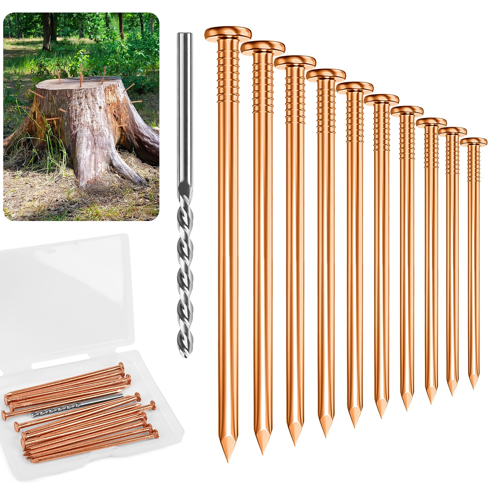 UCandy Pack 10 Copper Nails for Killing Trees Stump Root, 3.14" Copper Nails with Drill, Stump Removal Spikes Hardware Nails for Trees