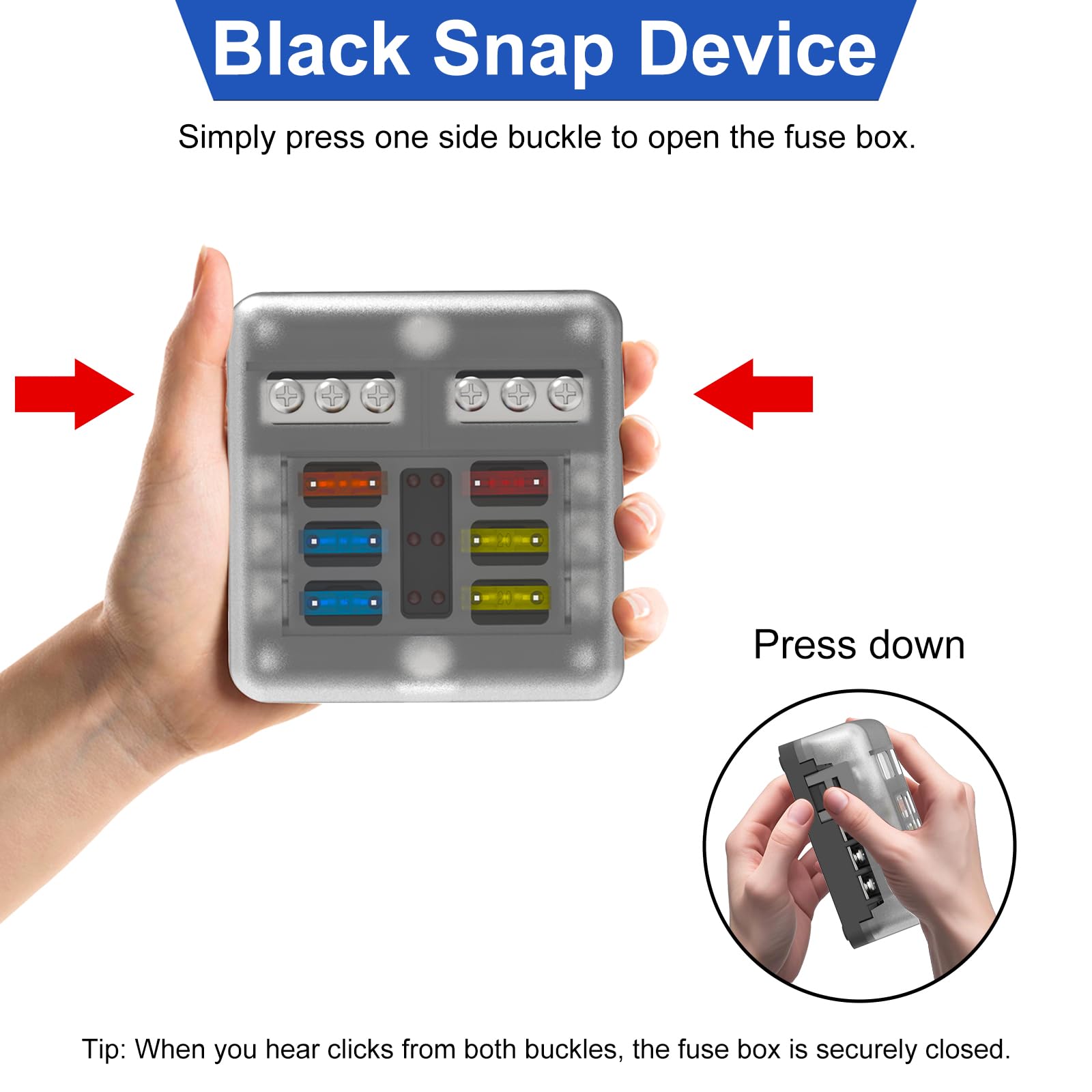 - 【Durable & Reliable】--The 12v fuse box is made of environmentally friendly material and is characterised by high mechanical strength, excellent insulation, heat resistance and flame retardancy