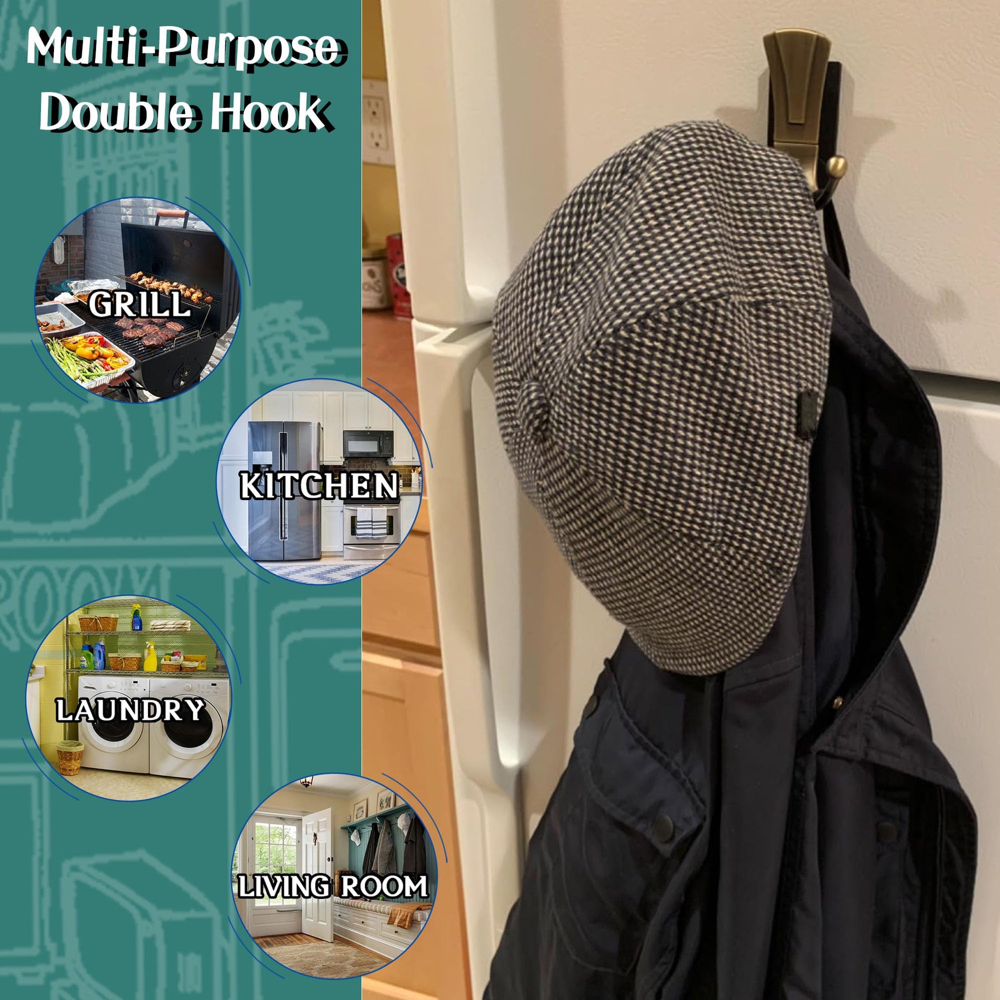 ULIBERMAGNET Magnetic Coat Hooks,Retro Heavy Duty Magnet Double Hooks for Metal Door,Cruise, Grill, Fridge, Kitchen, RVS,Coat Hanger Rack Decorative for for Towel,Coat,Bag,Umbrella