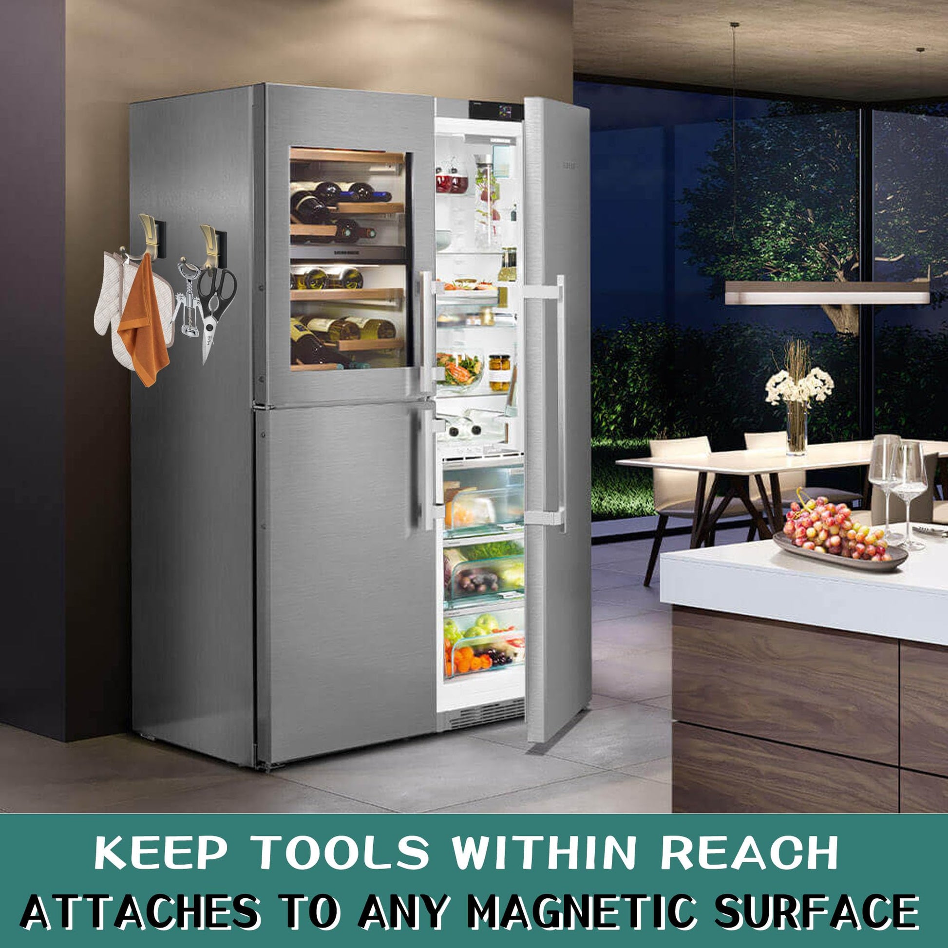 - [Multipurpose Neodymium Magnet Hook]: Strong magnetic hook is widely used indoors and outdoors, it's the best choice for kitchen, garage, warehouse, office. Use on metal doors, refrigerators, grills, cabinets, hang coats, towels, kitchenware, backpacks