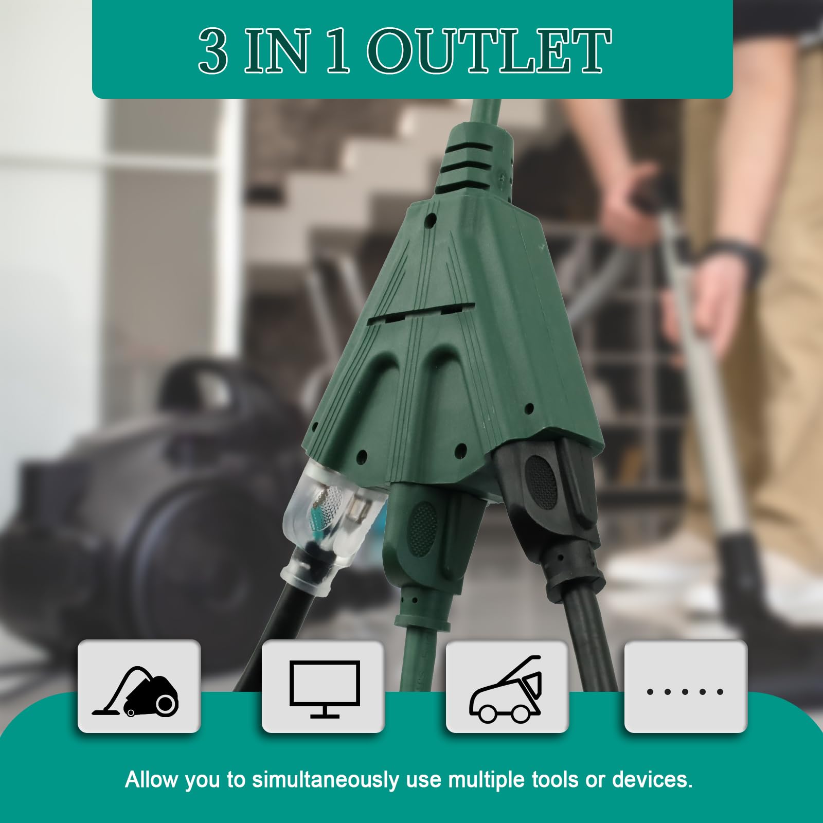 - Safety-First Construction - UL-listed for verified safety compliance, this electrical cord includes a 3-prong grounded plug and reinforced terminals to prevent overheating. the robust design of 3 plug extension cord meets strict electrical standards for peace of mind