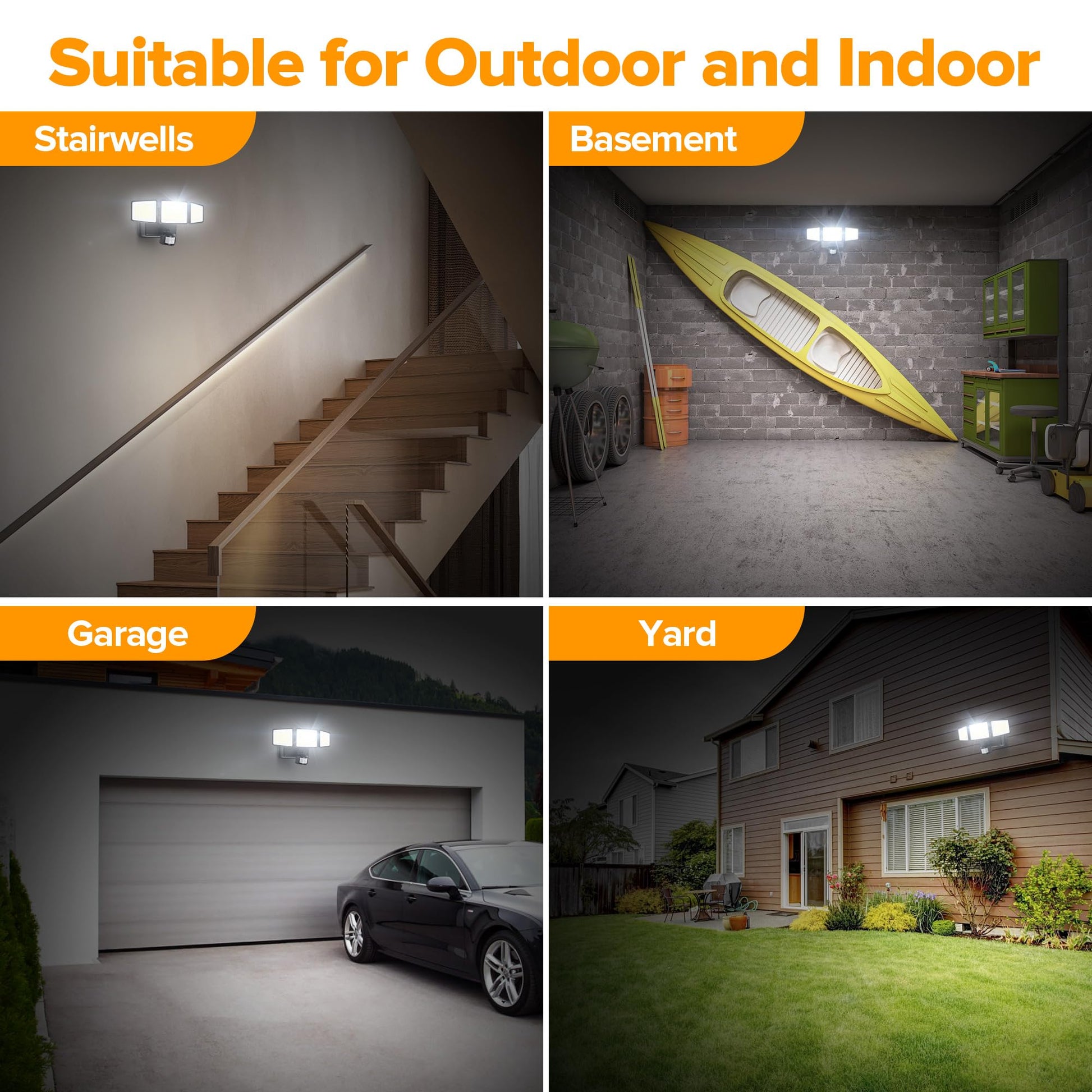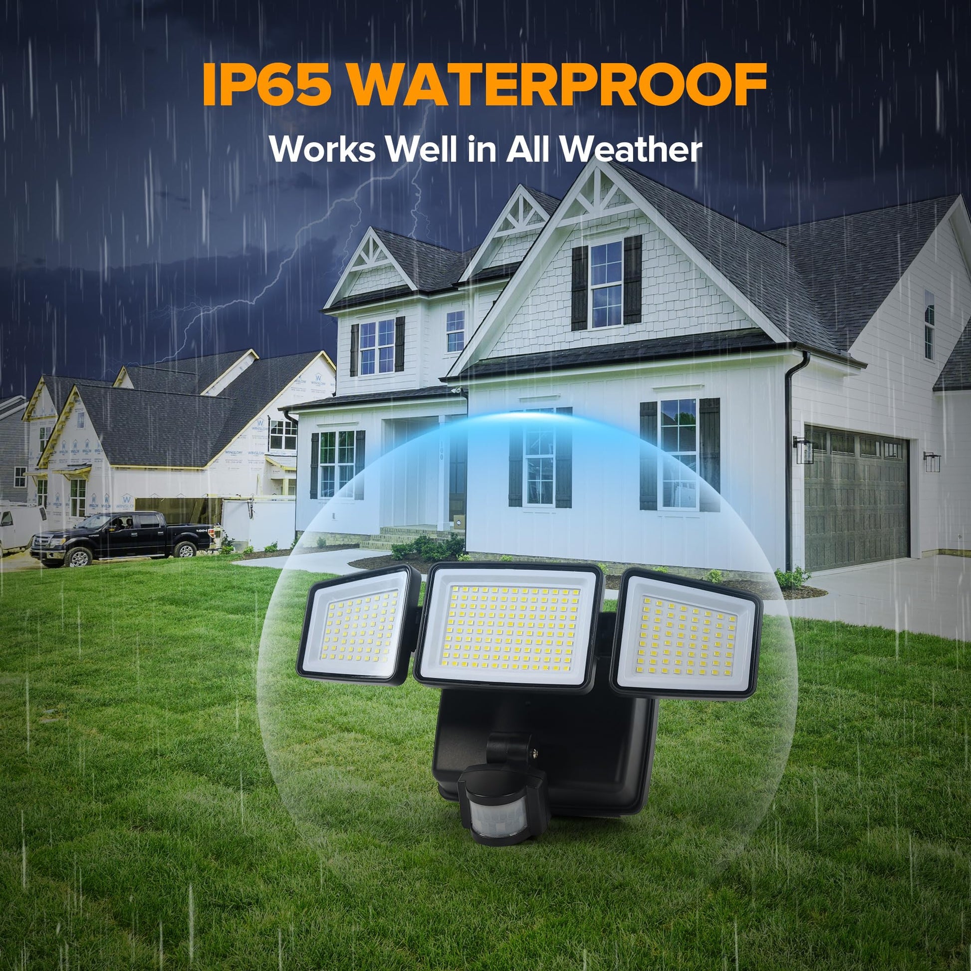 - 【302 Ultra-Bright LED & Wide Angle Illumination】With 302 ultra-bright LED, the flood light emits a powerful 1800 lumen warm white light (7000K color temperature). The three adjustable heads ensure flexible angle adjustments, ensuring a wide coverage of up to 270 degrees, effectively illuminating larger outdoor spaces.