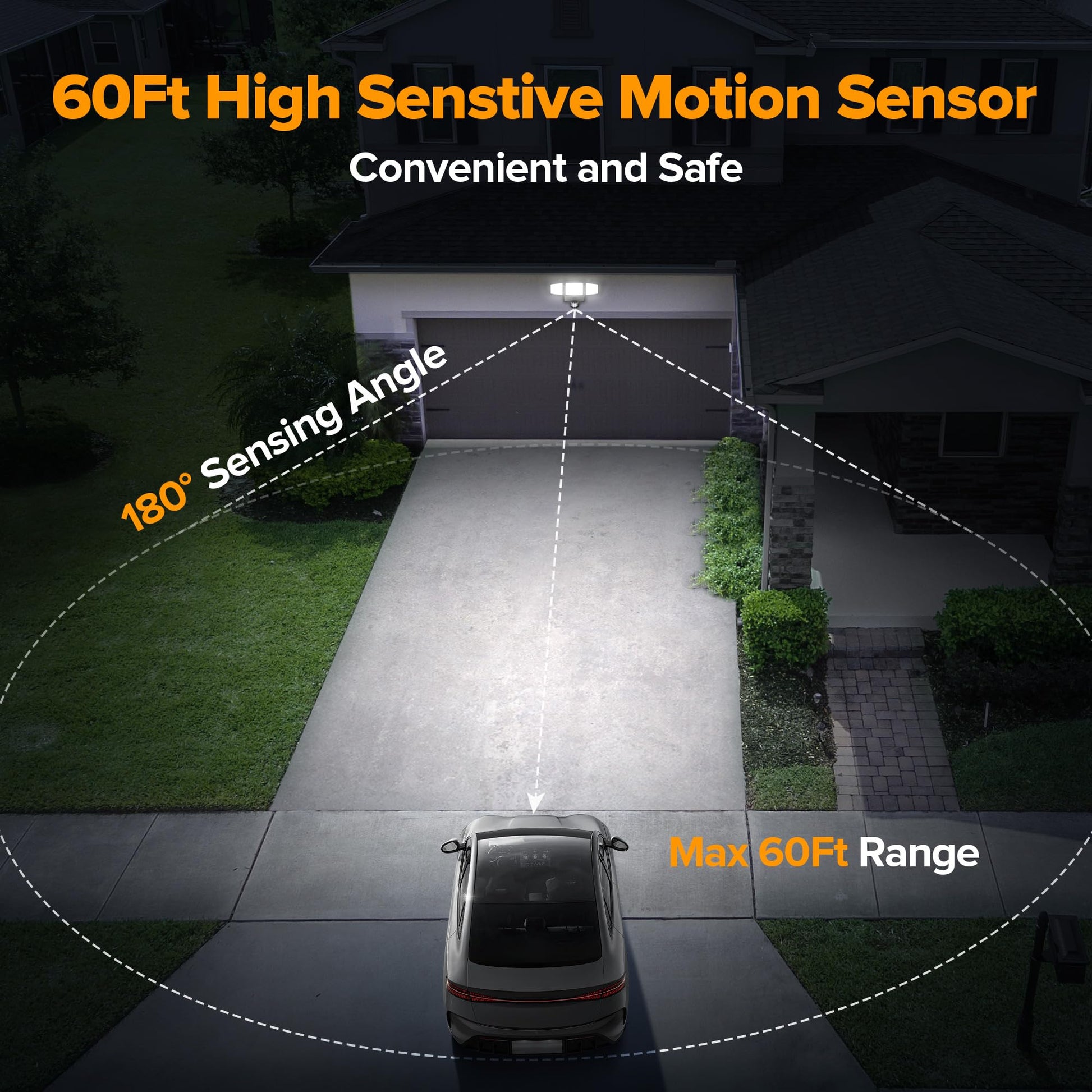 - 【3 Lighting Modes & Wide Applications】 The solar security light offers three versatile lighting modes: ① Motion-activated 100% brightness at night; ② Always-on 10% brightness at night for 8 hours ; ③ Always-on 3% brightness at night with motion-activated 100% brightness. These modes satisfy various usage requirements, making it suitable for outdoor use in garage,yard, porch, and swimming pools, etc.