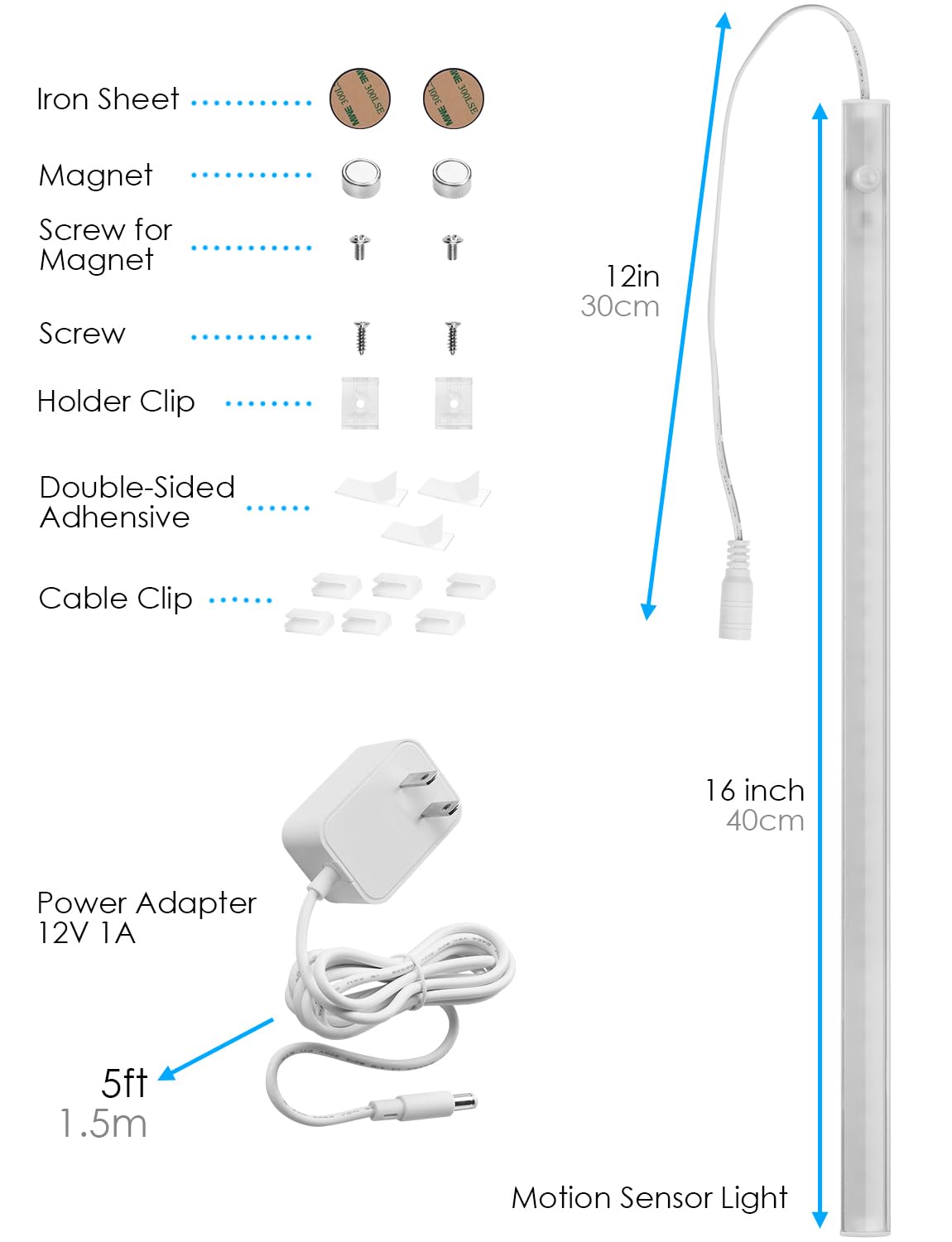Under Cabinet Lighting, Motion Sensor Lights Indoor Plug in, 16" 12V LED Under Counter Super Bright Magnetic for Kitchen/Hallway/Toilet/Garage/Closet(Warm White/3000K)