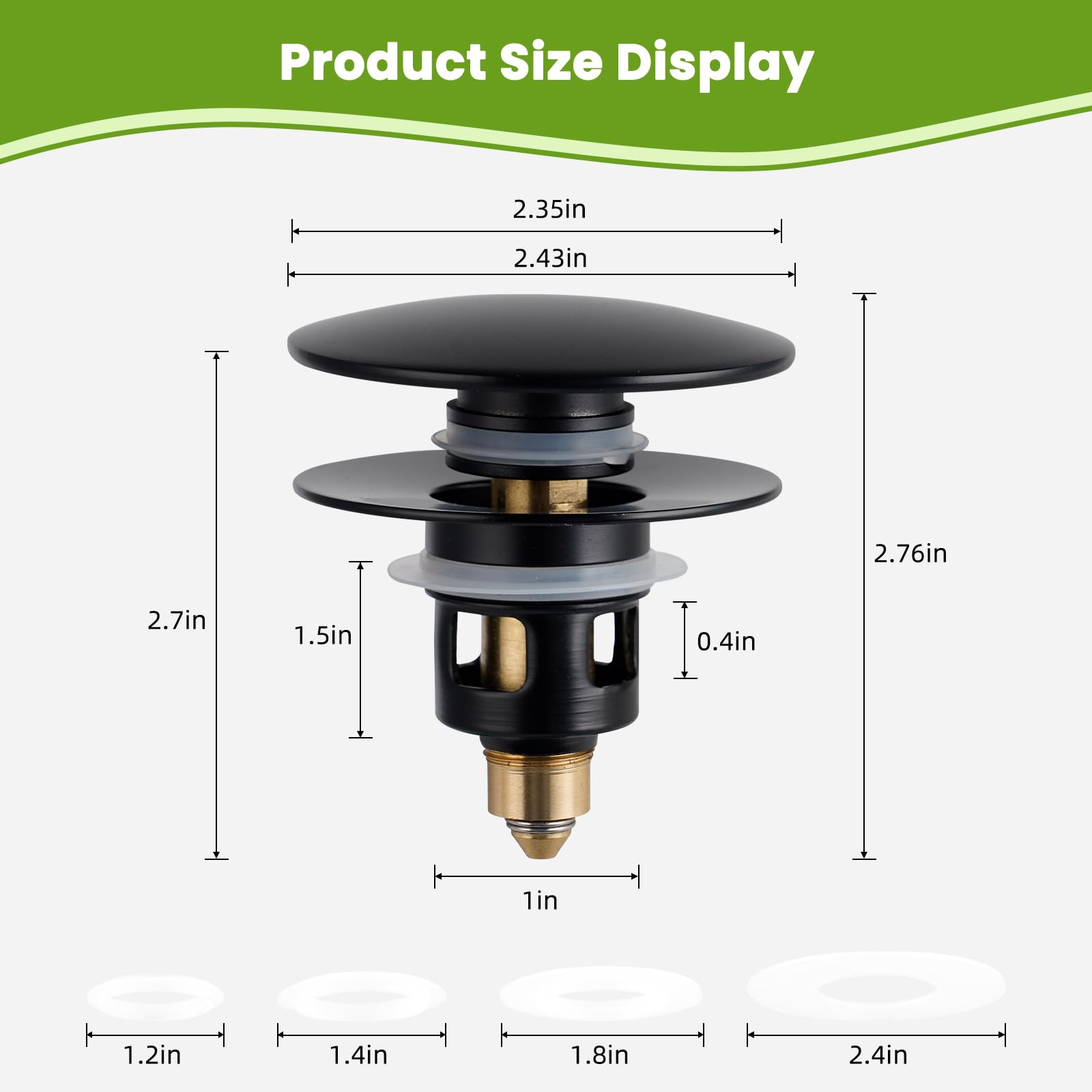 - Fits Most Bathroom Sinks: This sink stopper is made to fit almost all standard US bathroom basin sinks (NOT FOR BATHTUB) , Its brass bullet core can fit drain holes from 1.1 into 2.36 in; It is equipped with 4pcs silicone rings to make sure it fits 99% of standard drains, great for renters/homeowners - no permanent modifications required