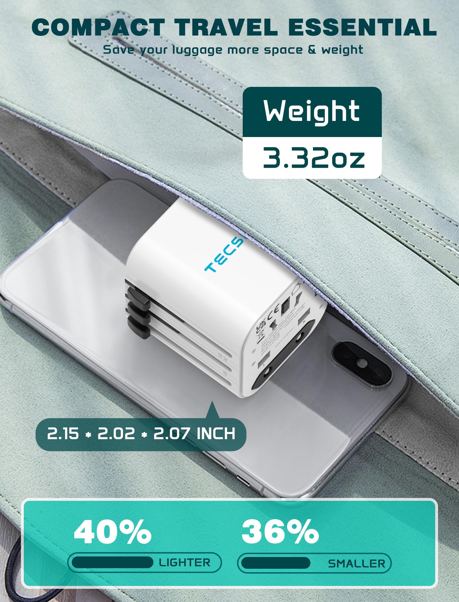 - Space-Saving & Damage-Free Design: With the ultra-compact size (3.32oz, 2.15 x 2.02 x 2.07 inches), this international travel adapter is 50% smaller and 40% lighter than traditional ones. The push-button feature makes it simple to use, while the design protects the prongs from damage, ensuring your travel power adapter lasts longer.
