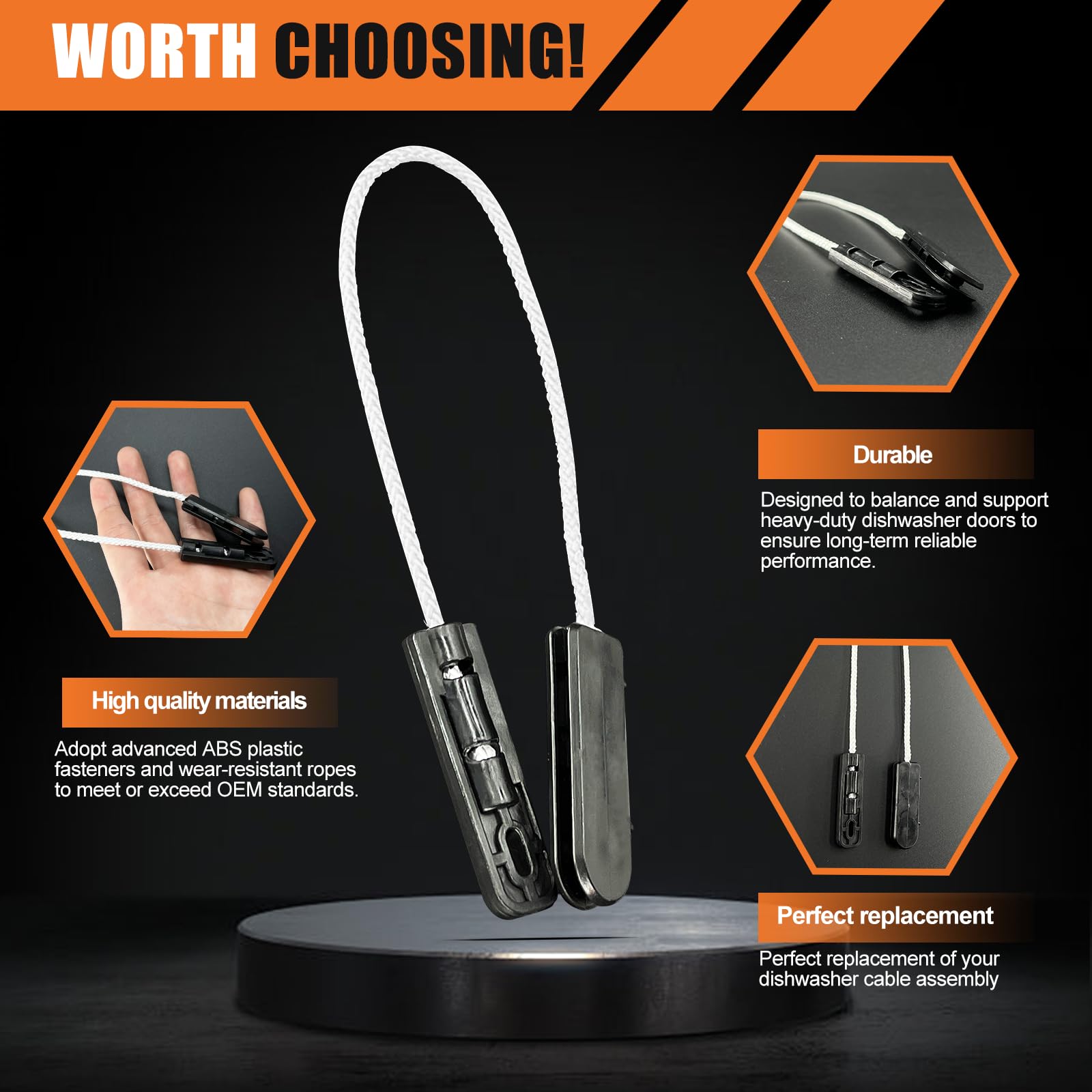 - EXCELLENT PARTS: Our 4933DD3001B Dishwasher Door Hinge Cable Assembly is made of advanced materials, which meet or exceed OEM standards. Designed to balance and support heavy-duty dishwasher doors to ensure long-term reliable performance. Two plastic sheets are about 2 inches long and 3/4 inches wide, and a rope part is about 8 inches long