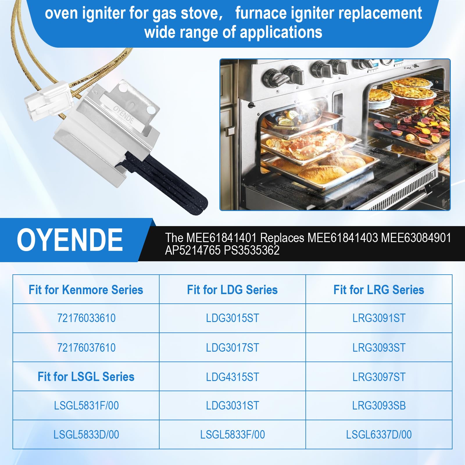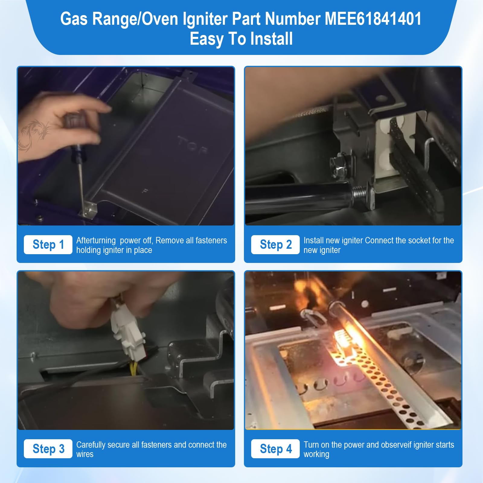 - Important Note:Each MEE61841401 MEE61841403 oven igniter replacement for LG has passed anti-aging tests, so don’t worry about any discoloration—it won’t affect performance! This ensures better heat resistance and a stronger power connection, helping you light your oven burner and adjust temperatures easily. This oven igniter is designed to extend the life of your stove or oven. If you have questions, feel free to contact us; CSZKJXPA is dedicated to providing excellent customer service!