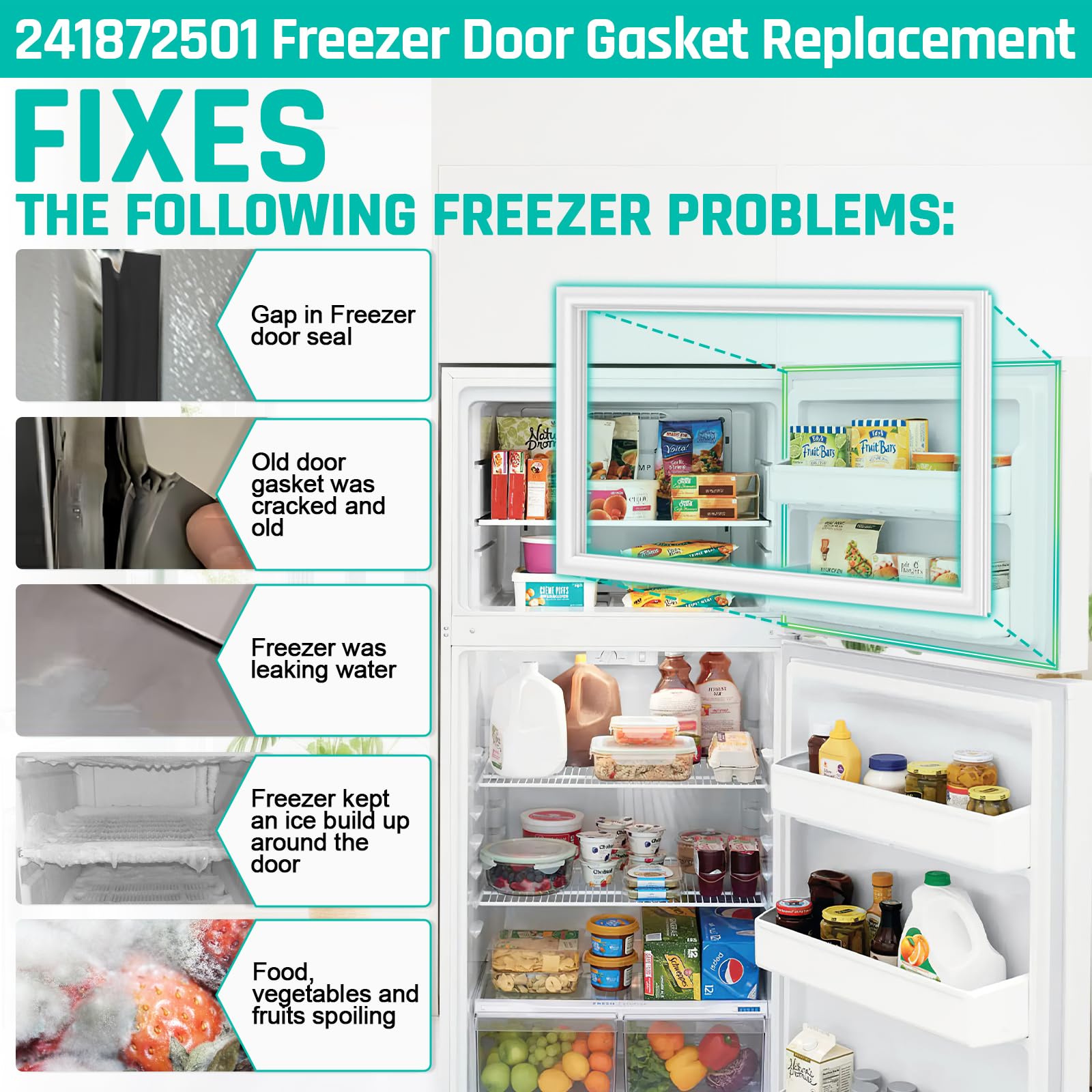 - [Built-in Strong Suction Strip,Great Sealing ] Our gasket 241872501 uses thicken magnetic strips, resistant to bending, strong suction for effective sealing and functions the same as original OEM-branded parts, but quality seal better than OEM. Perfect insulates the outside air and creates a low-temperature environment to keep your food fresh. You no longer need to worry about food being oxidized or contaminated, 241872501 freezer door seal will guard the deliciousness for you.