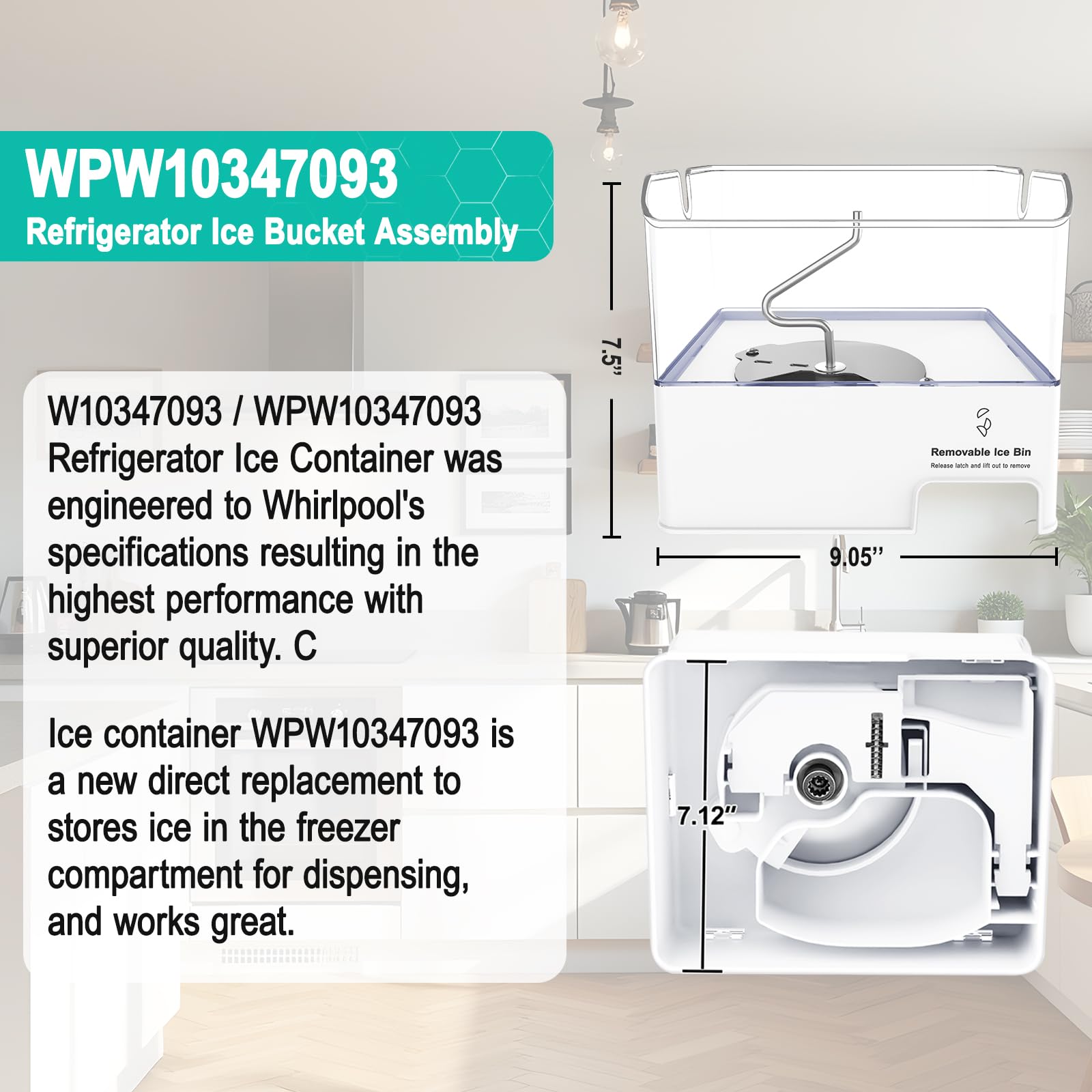 Upgraded W10347093 Removable Ice Bin Replacement for Whirlpool Refrigerator Ice Maker Parts WPW10347093 Ice Bucket fit WRF736SDAM13, WRF736SDAM14, Replace W10347100, AP6020018 Ice Container Assembly