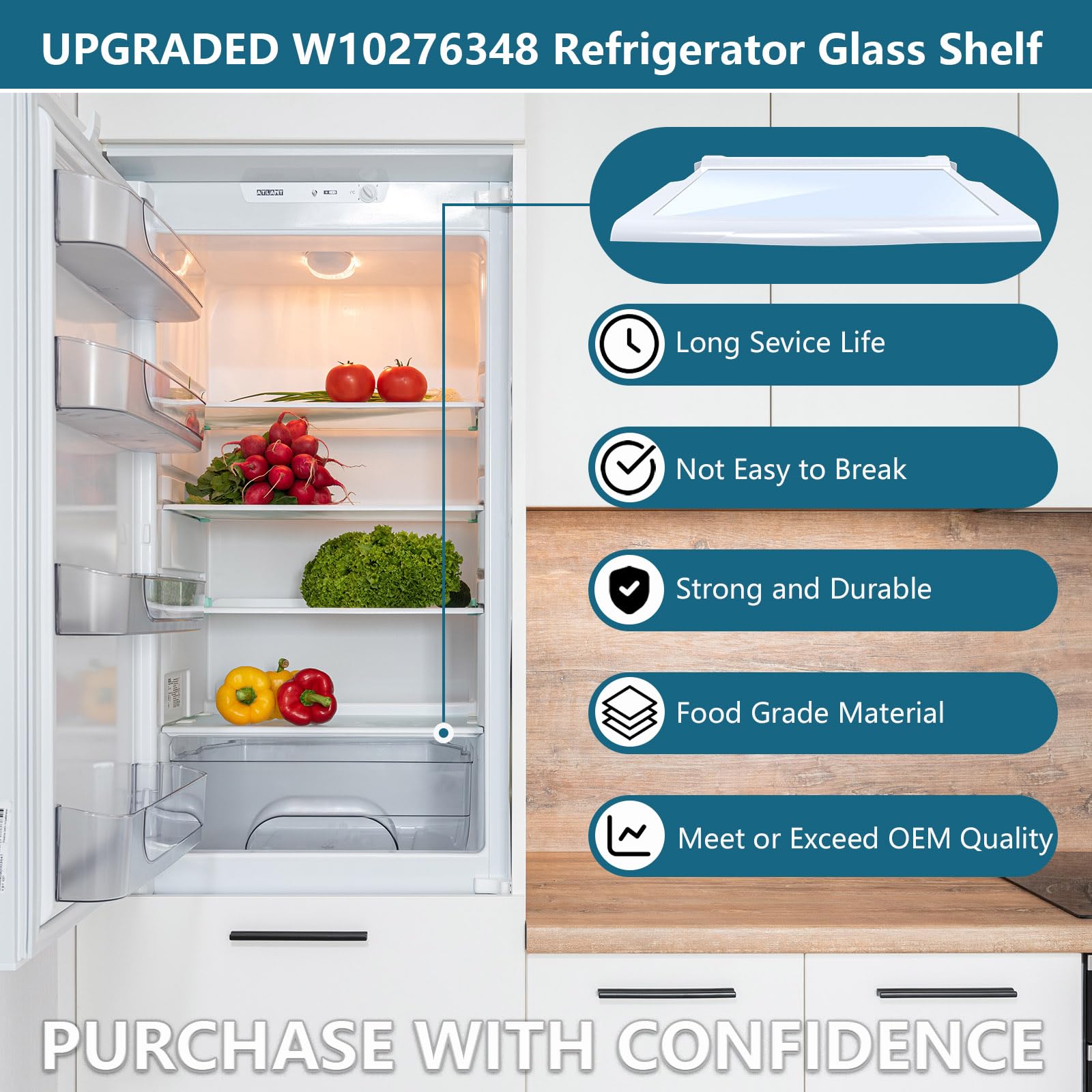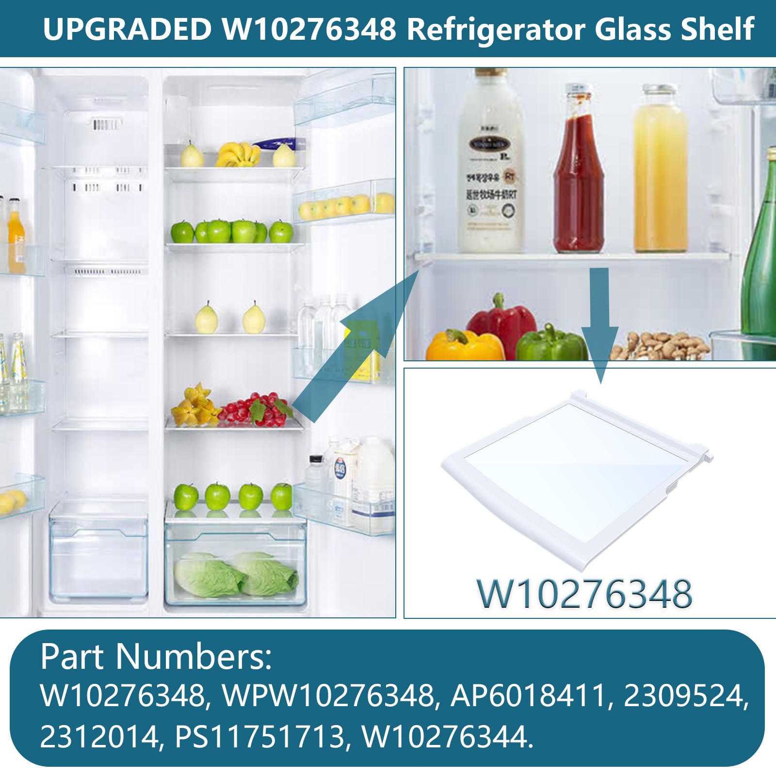 UPGRADED WPW10276348 W10276348 Glass Shelf Compatible with Whirl pool, Ken more Refrigerator W10276344, PS11751713, 2312014, 2309524,AP6018411, 2 Pack