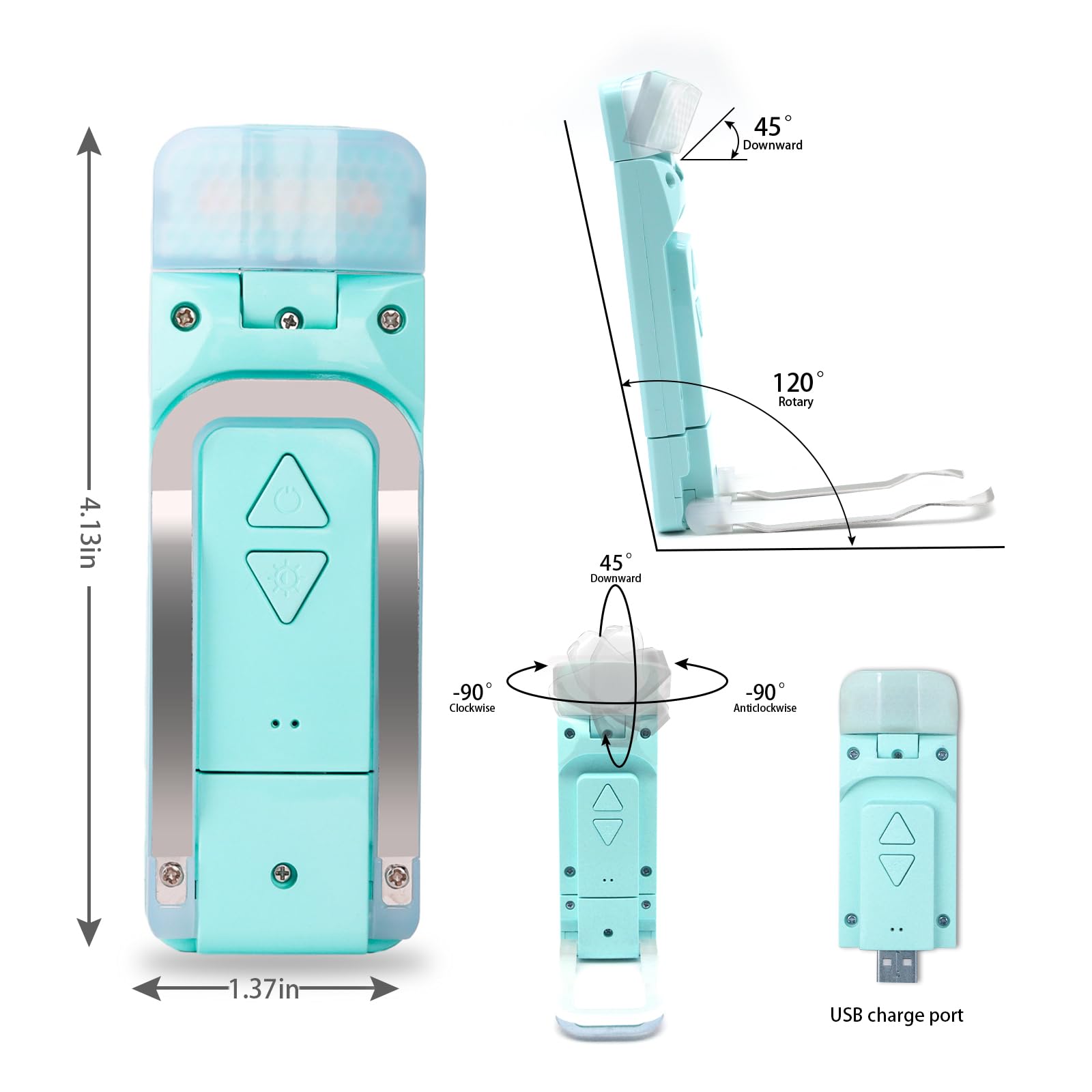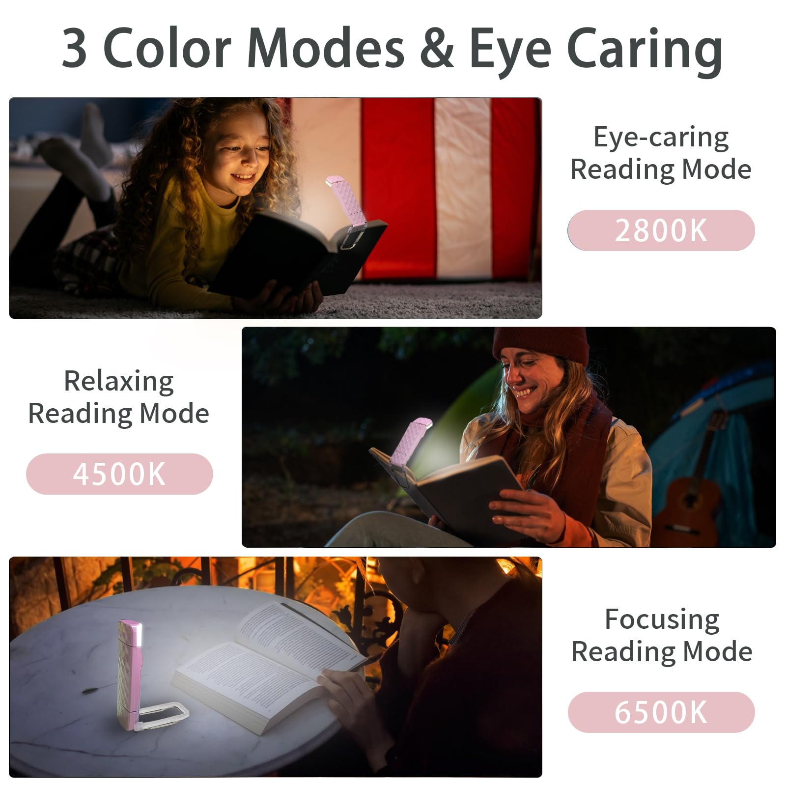 - Book Lights for Reading at Night: Our Light Blue and Pink book light has 3 Color Modes, 5 brightness levels (100%, 80%, 60%, 40%, 20%) can be adjusted by button, the LED light head can be selected in counter-clockwise and clockwise, and the flexible bracket with 170° can be bent to any angle.This rechargeable book light is rechargeable with standard USB, compatible with any USB port on computer, adapter or USB socket.