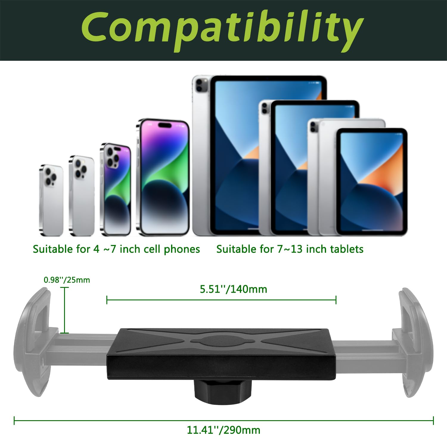 - Wide Compatibility: This universal golf cart tablet holder fits all 4-13" devices, including iPad Pro/Air/Mini, Galaxy Tab, Surface Pro/Go, iPhone, and most smartphones/tablets/switches/kindles.