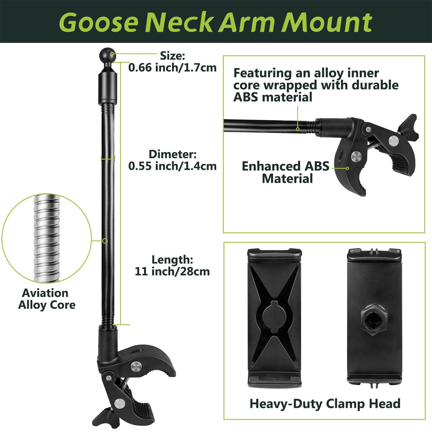 - Superior Design: This clamp can be securely mounted on the steering column of the cart to hold tablets and phones, and is compatible with round poles measuring 0.6in - 1.8in (15mm - 45mm) in diameter. NOTE: The extension arm may cause slight wobbling on bumpy roads.