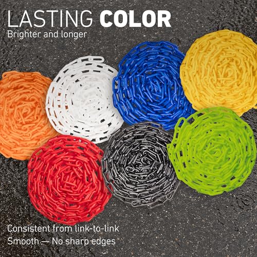 - Multiple Color Options: Available in a variety of bright colors, our vibrant plastic link chains allow you to easily specialize your visual barriers to suit your specific needs