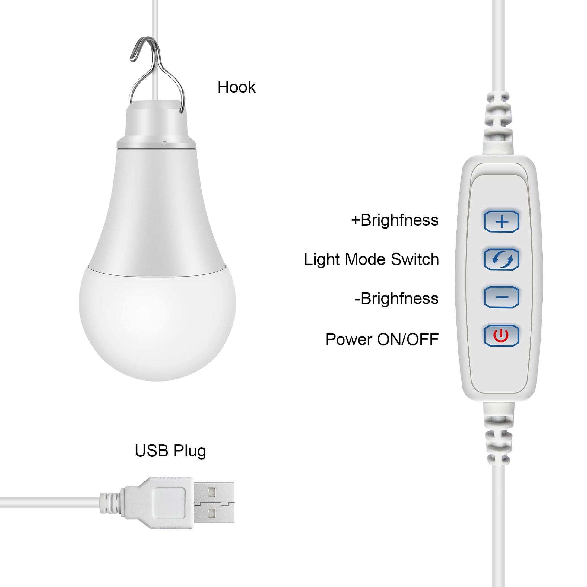 - SAFE TO USE: This USB light bulb without battery. Convenient with a metal wire hook for portable to hang on or take down anytime and anywhere, equipped with free switch,Using flame-retardant PC material, no fluorescent gas, and no glass.