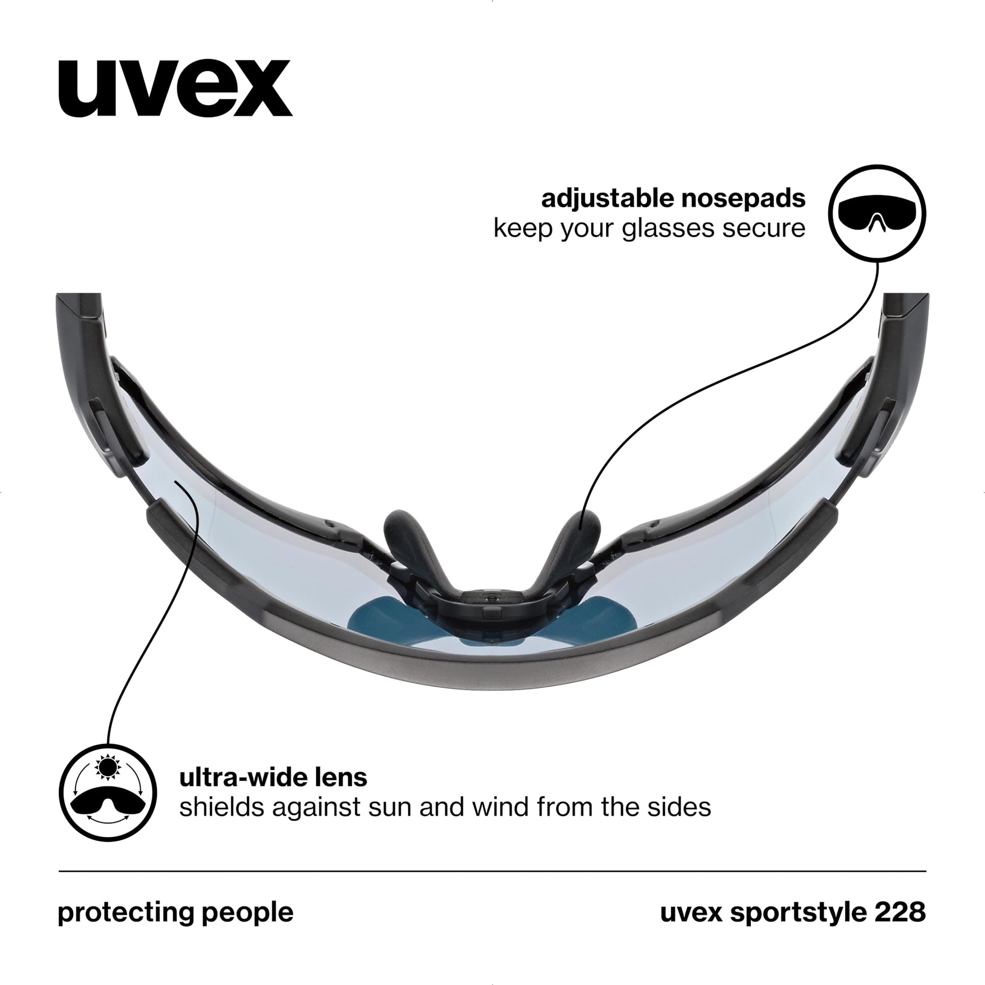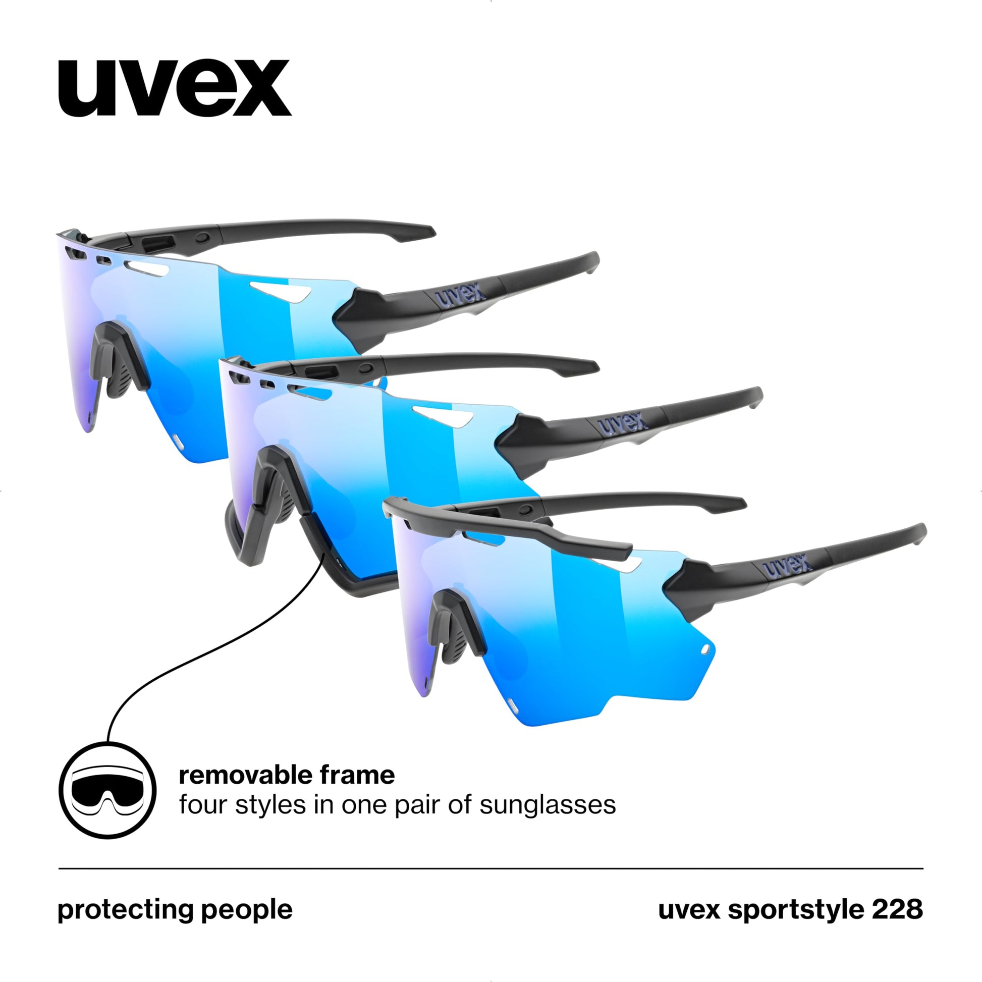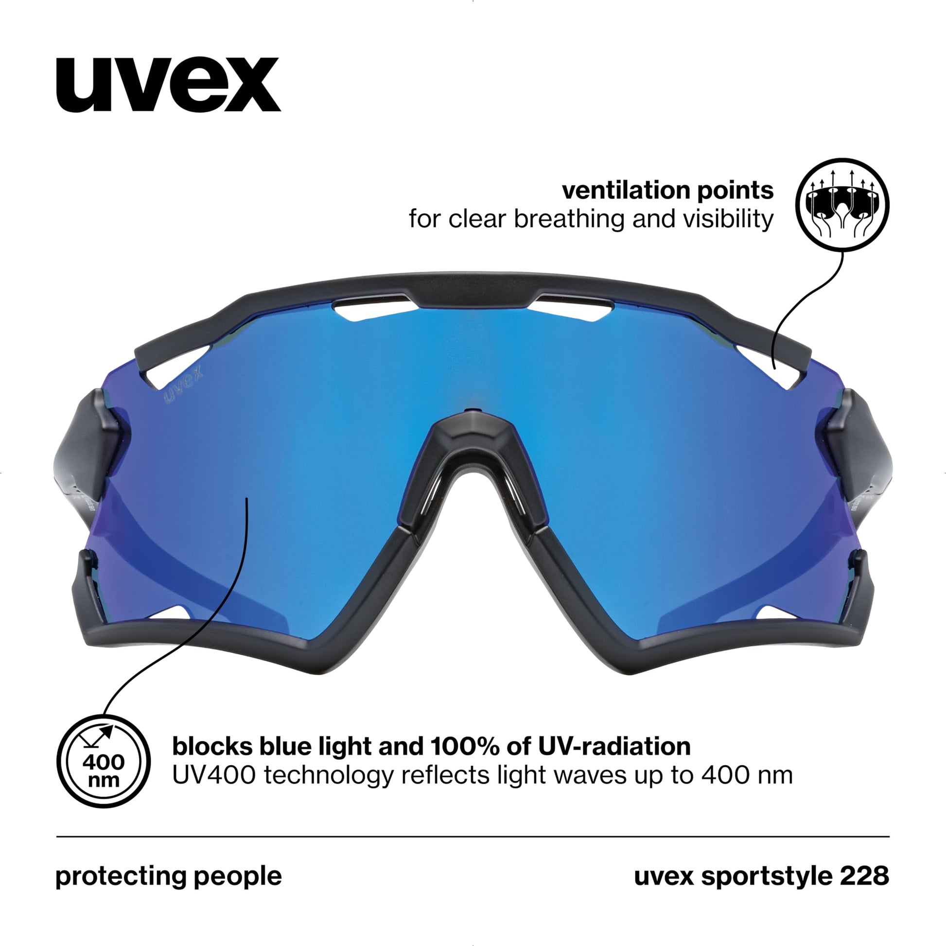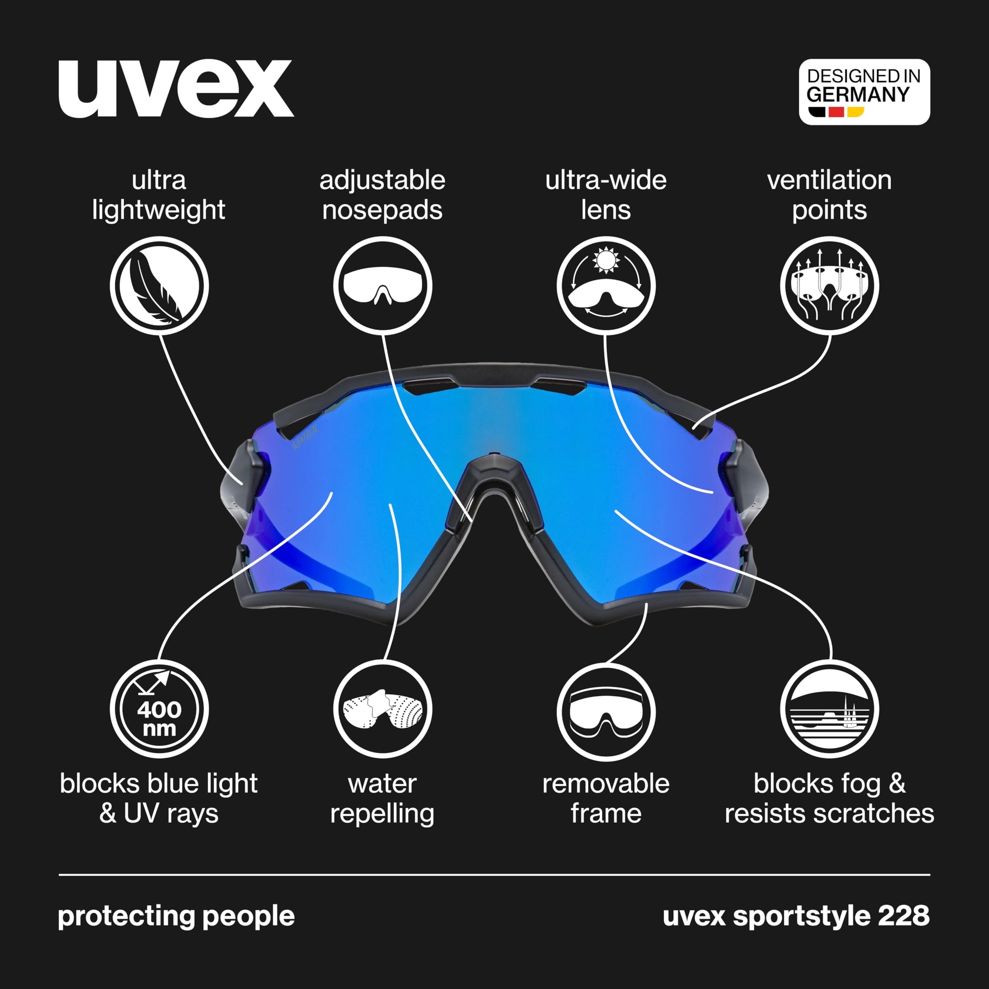 uvex sportstyle 228 - sports sunglasses - cycling/running shades - anti-fog & scratch resistant lenses with UV protection - black matte/mirror blue - one size