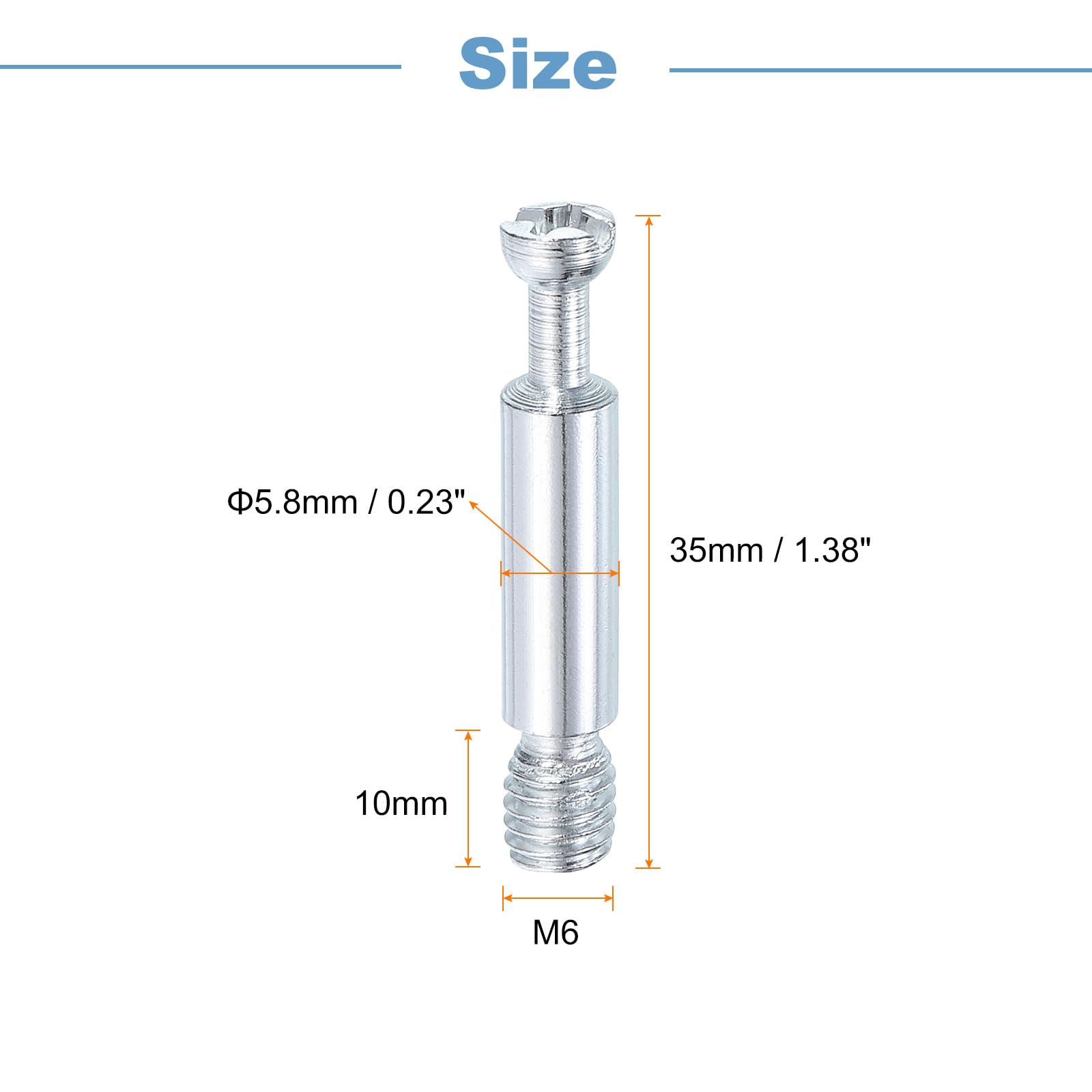 - [SIZE & PACKAGING]: The thread size is M6 x 10mm (Dia x L), the total size of furniture lock fasteners is 5.8 x 35mm / 0.23" x 1.38" (Dia x L), and the package includes 45pcs of furniture connecting fittings