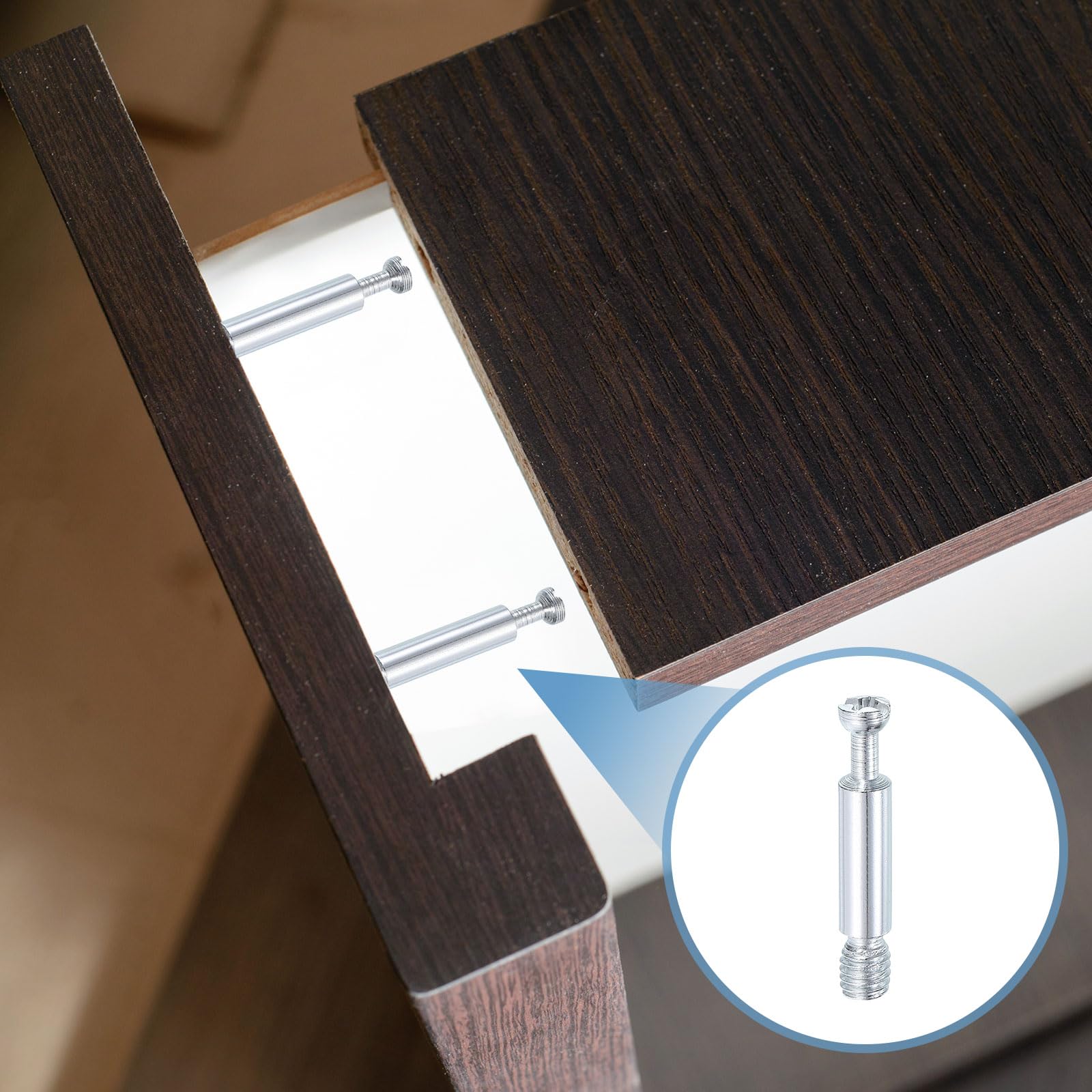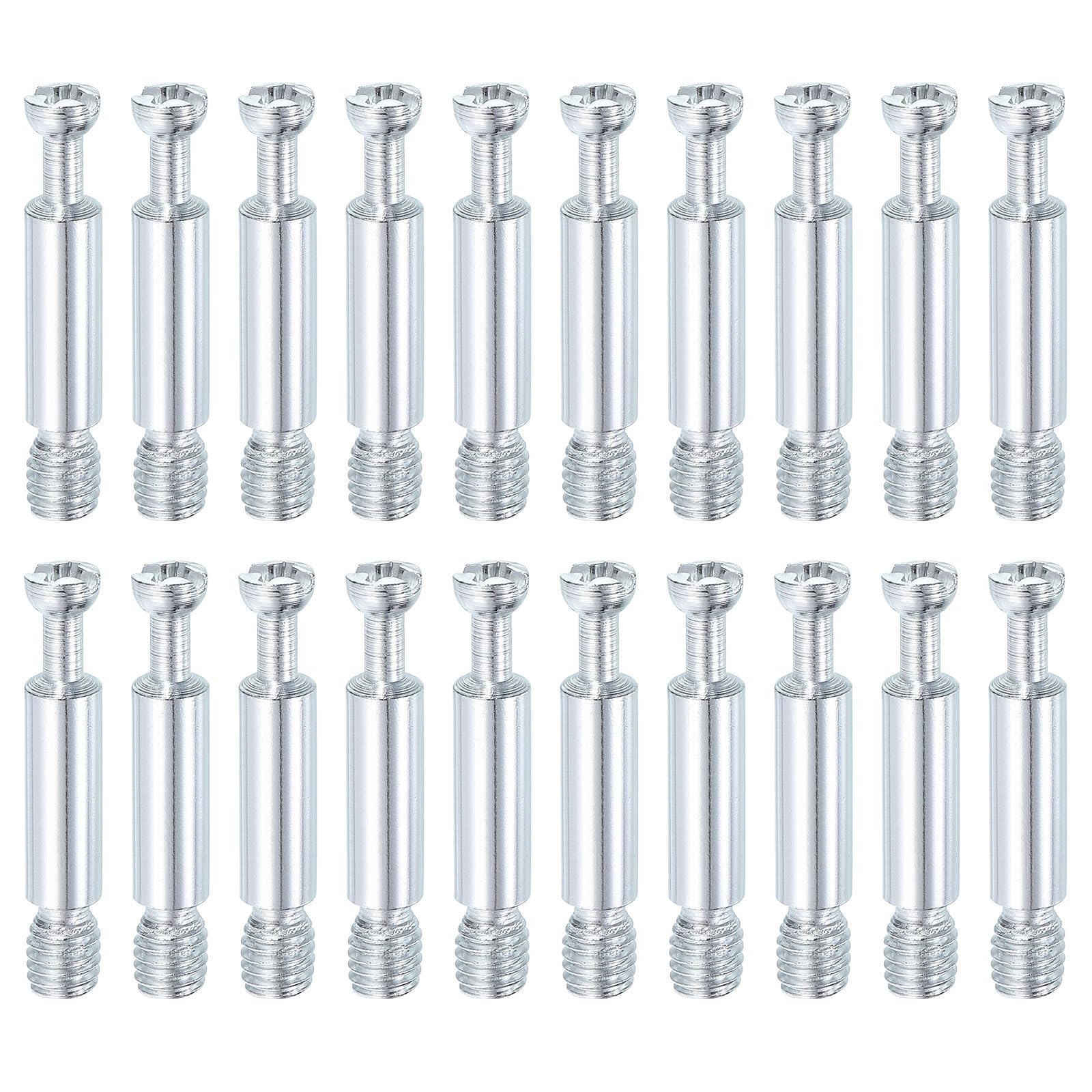 uxcell 45Pcs 35mm Furniture Connecting Fittings, Thread Bolts Dowels Screws, Metal Dowel Fitting Fasteners for Cabinet Drawer and Wardrobe Furniture, Silver