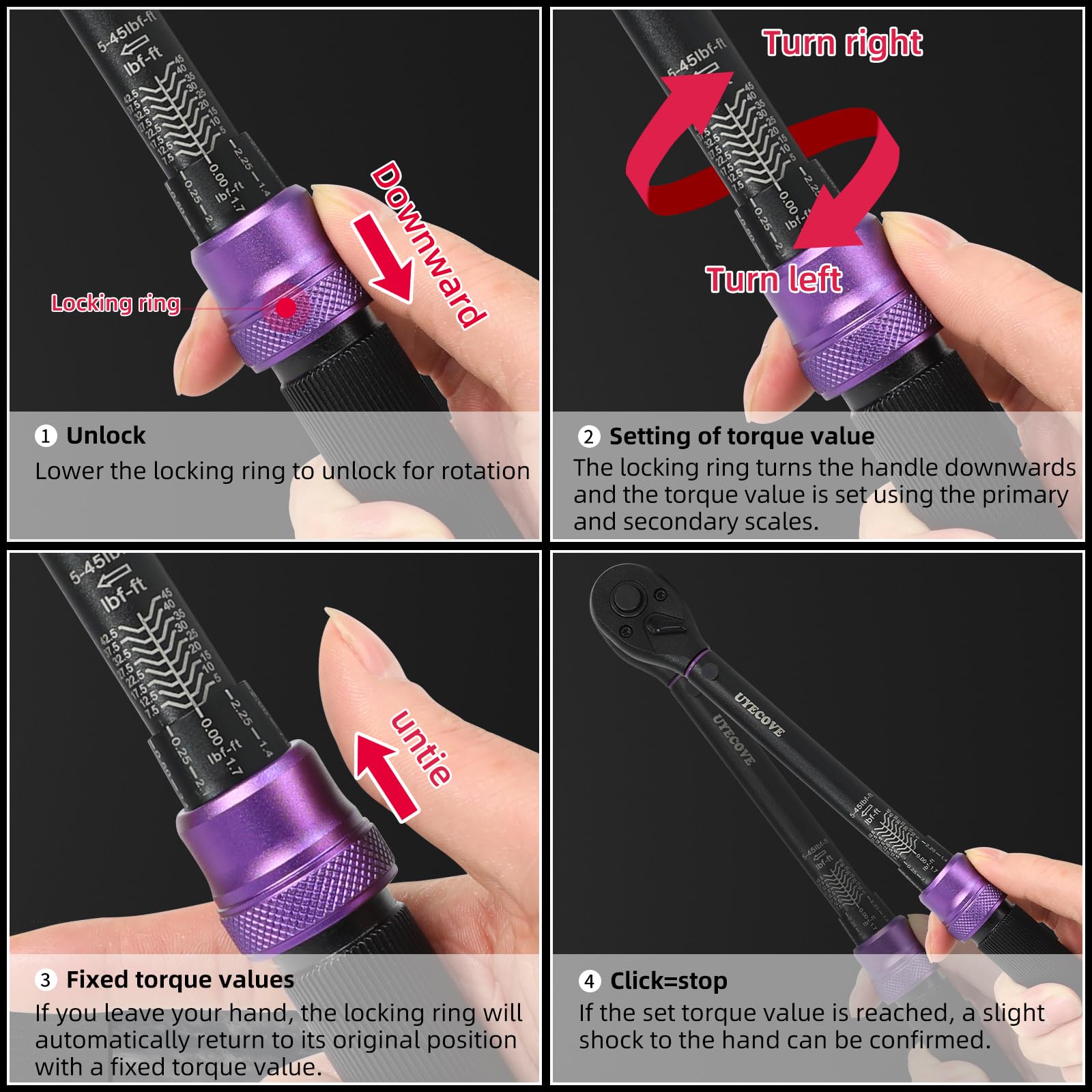 - Easy to Set: The torque wrenches in this set are easy to set and use. Simply pull down the locking knob, set the desired torque value, and release the knob to lock the torque value.