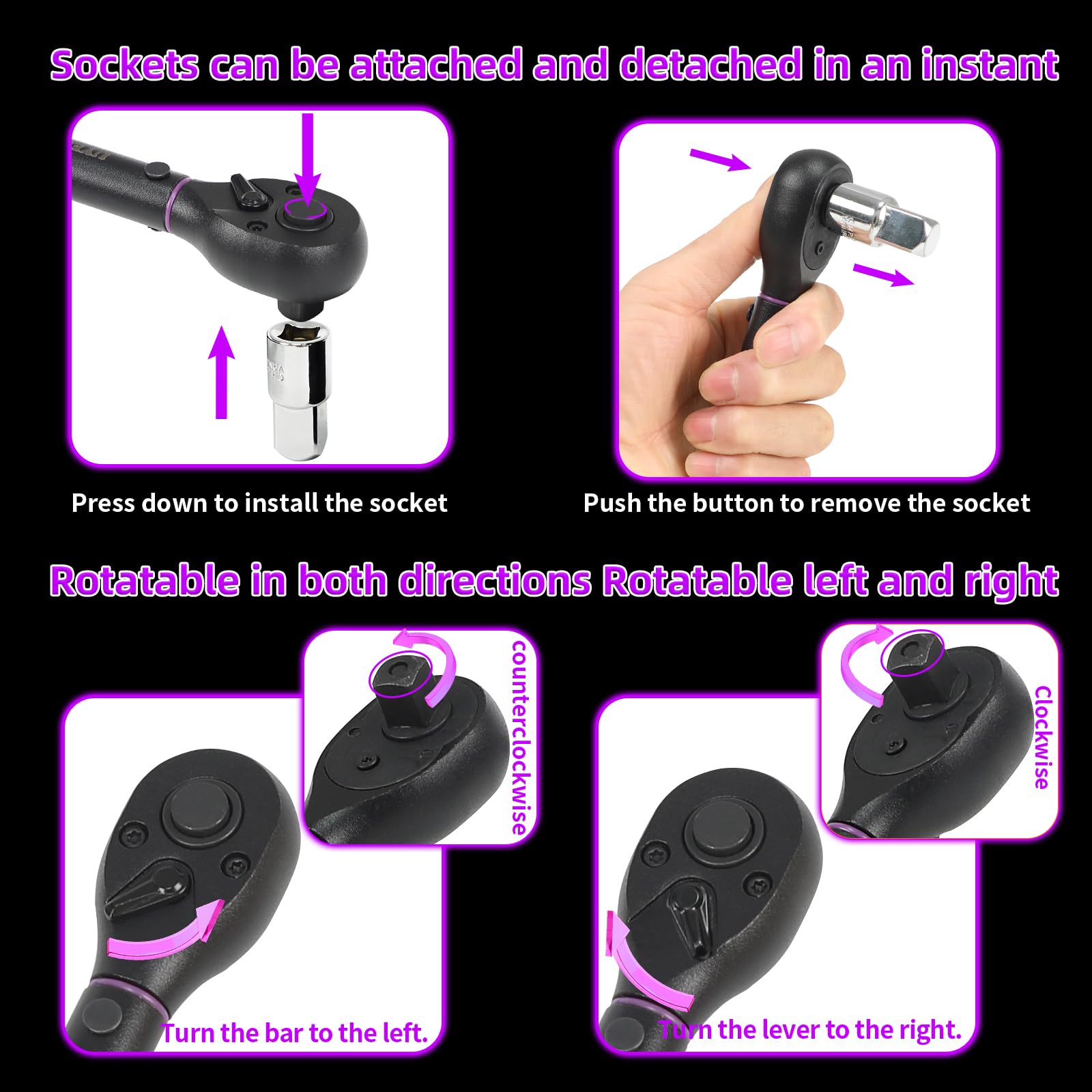 - Quick Release Button: With the quick release button on the 3/8 drive torque wrench or torque wrench 1/2 drive or 1/4 torque wrench, you can easily and securely change accessories while working on your project.